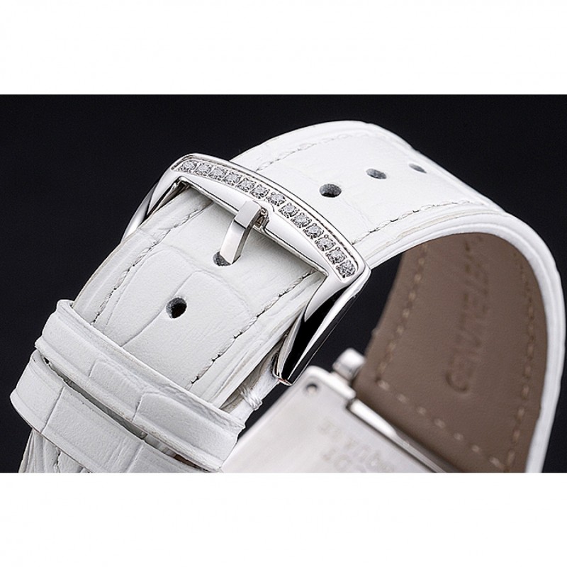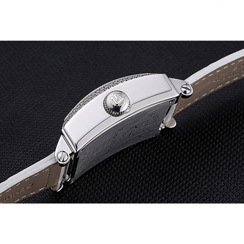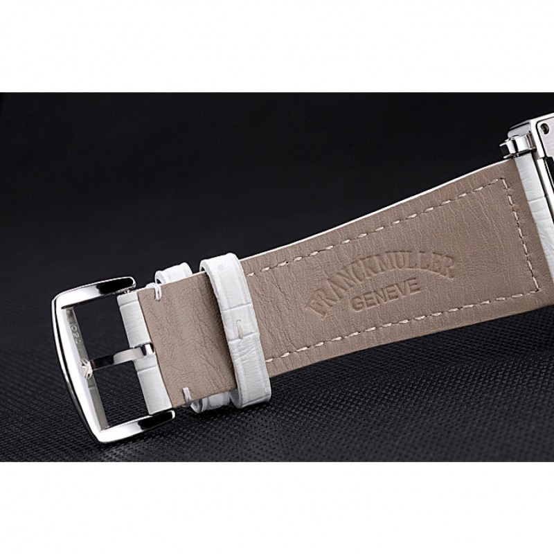 Bracelet:chaleur Franck Muller bracelet en cuir de crocodile blanc en relief avec goujon de diamant fermoir en acier inoxydable poli crochet boucle