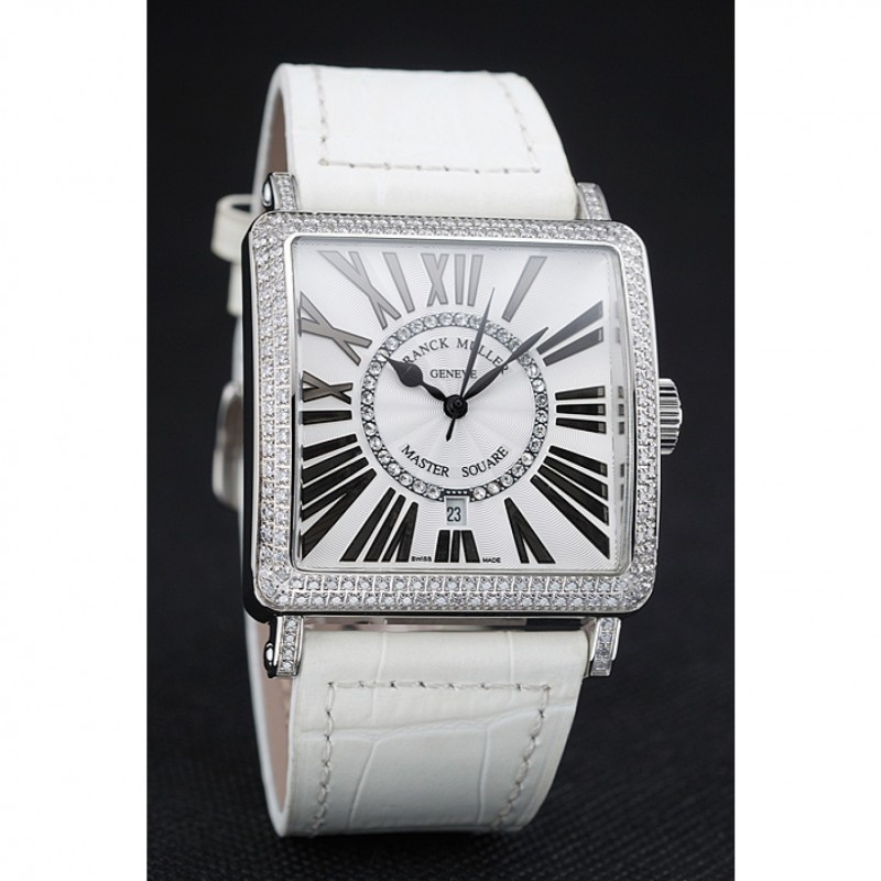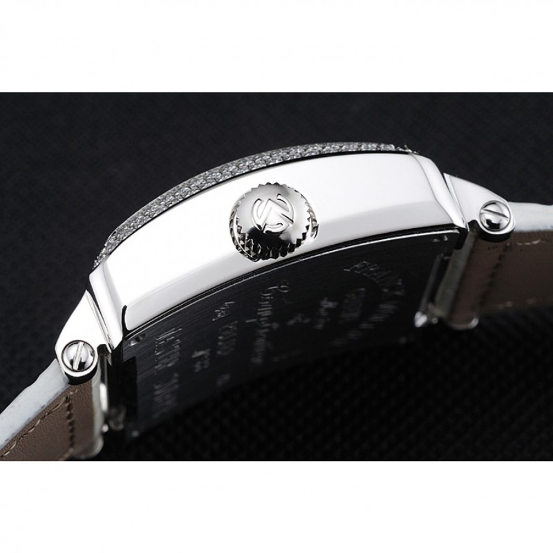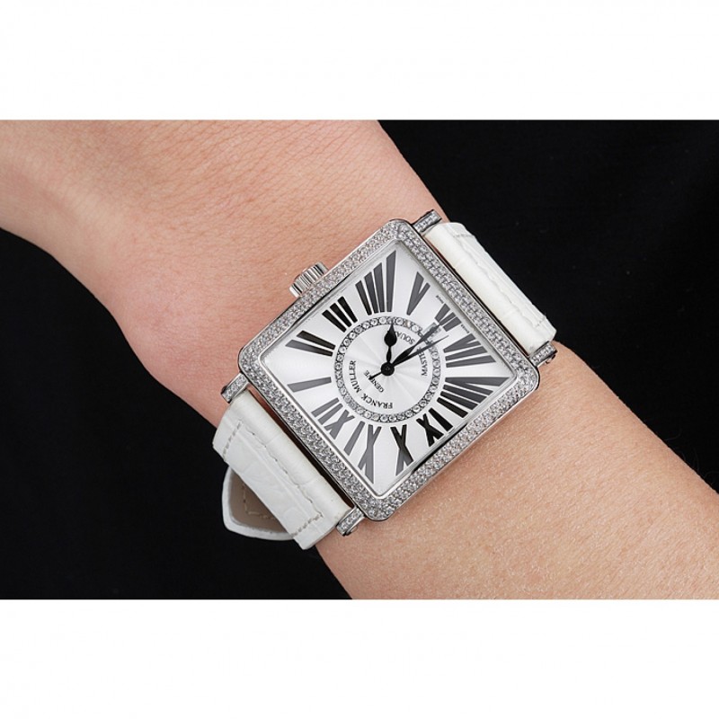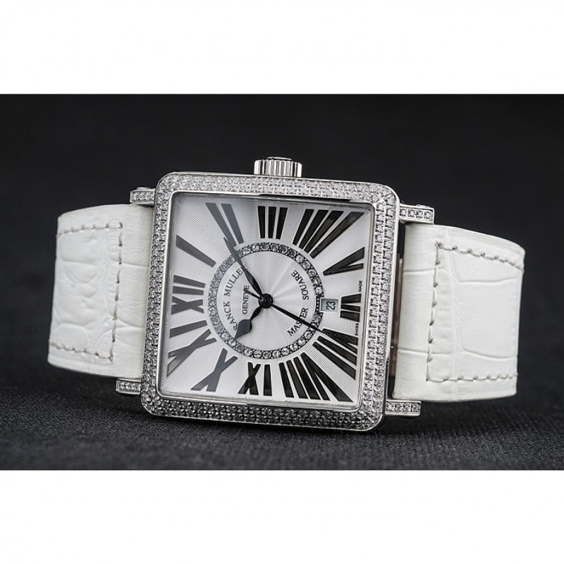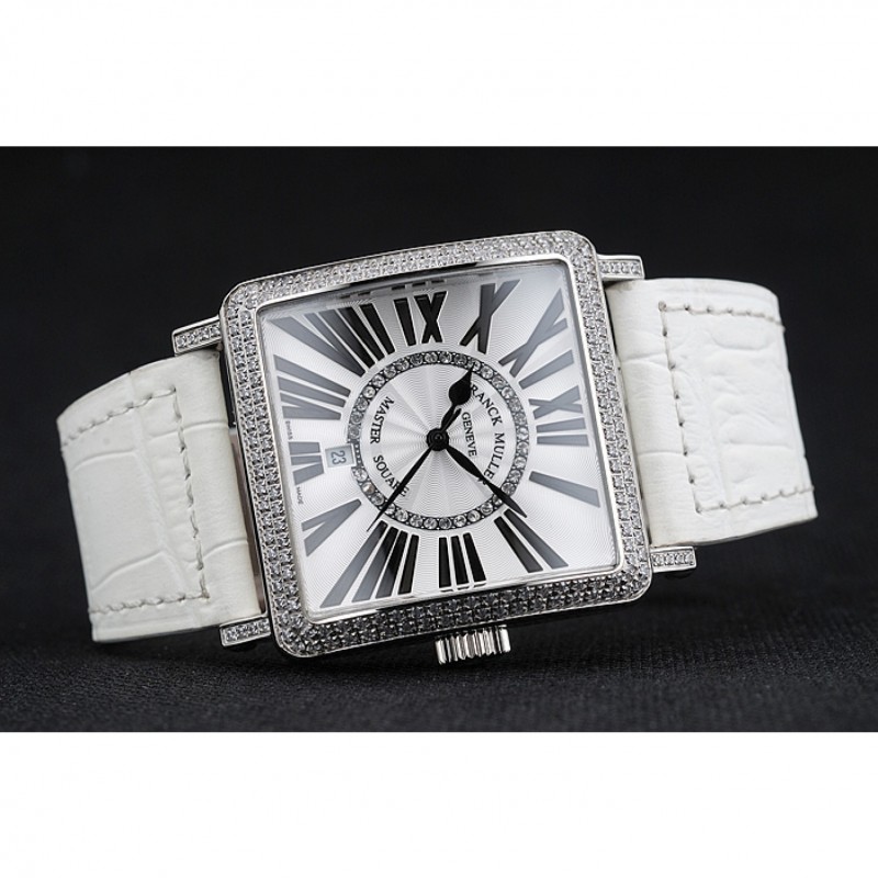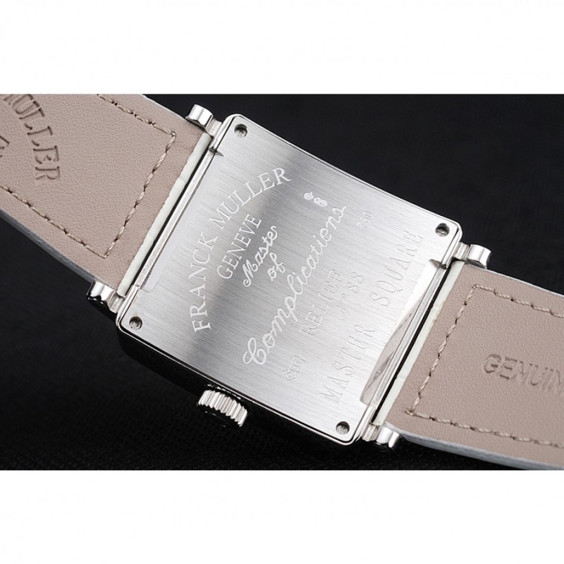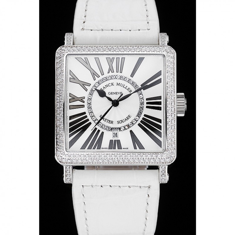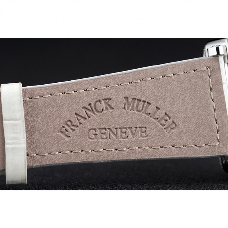 Bracelet:Franck Muller Geneve chaleur cuir crocodile blanc estampé sangle avec Franck Muller gravé en acier inoxydable poli fermoir crochet-boucle