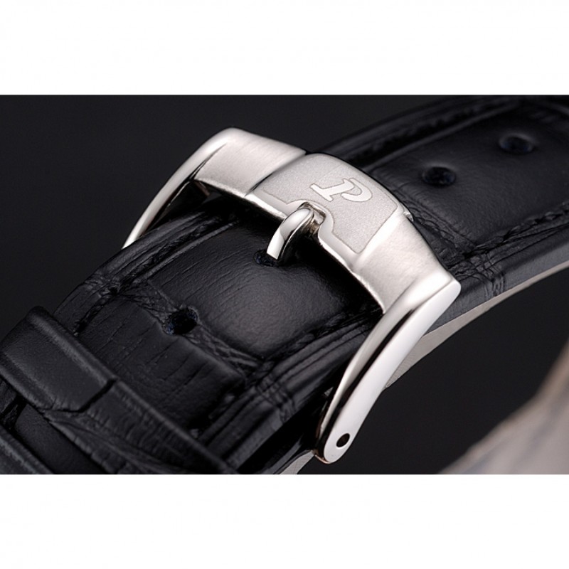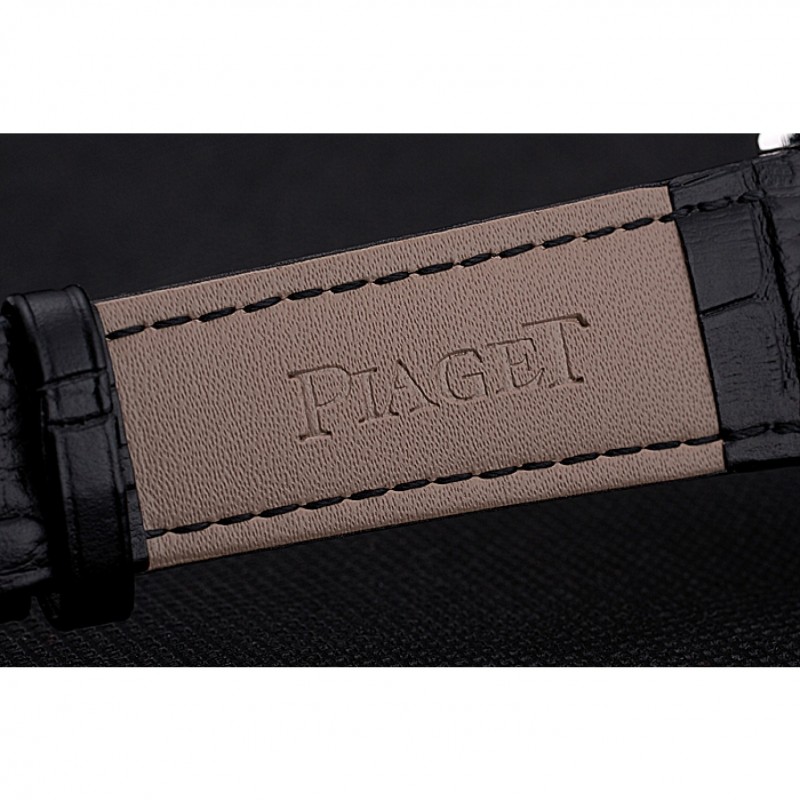 Bracelet:Piaget chaleur en relief bracelet en cuir crocodile noir avec Piaget logo gravé fermoir crochet-boucle en acier inoxydable poli
