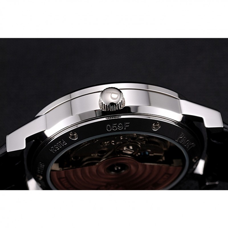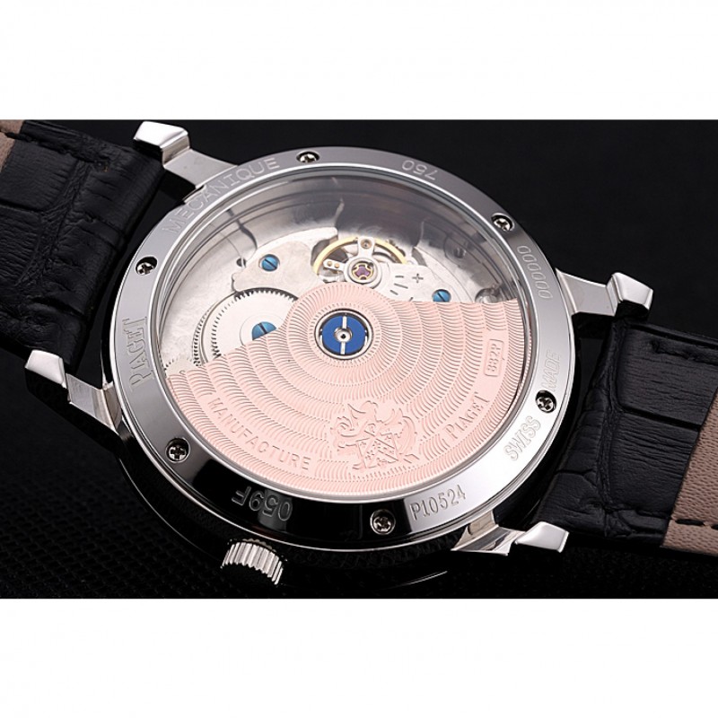 Retour:mécanique révélant transparent en acier inoxydable poli Rimmed vissé retour avec gravures Piaget