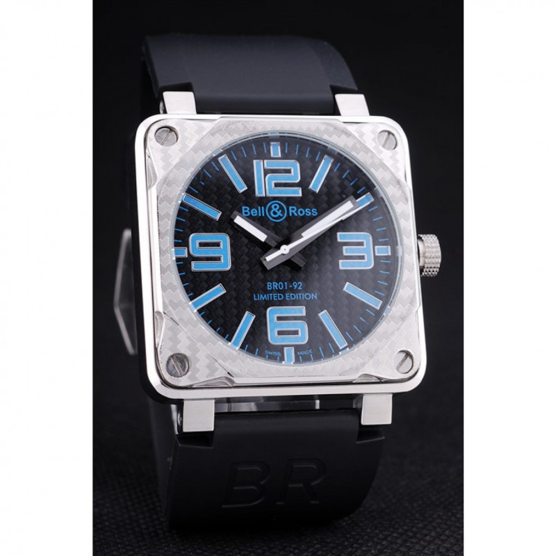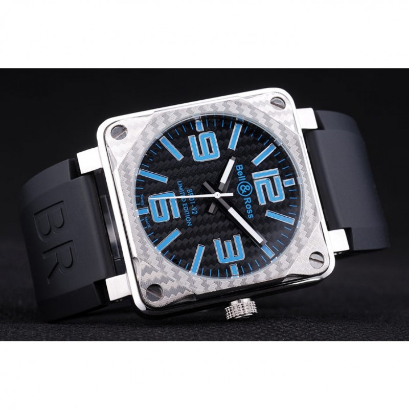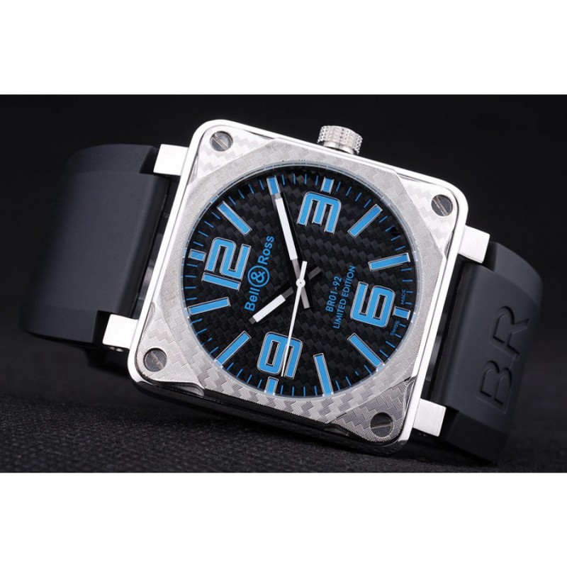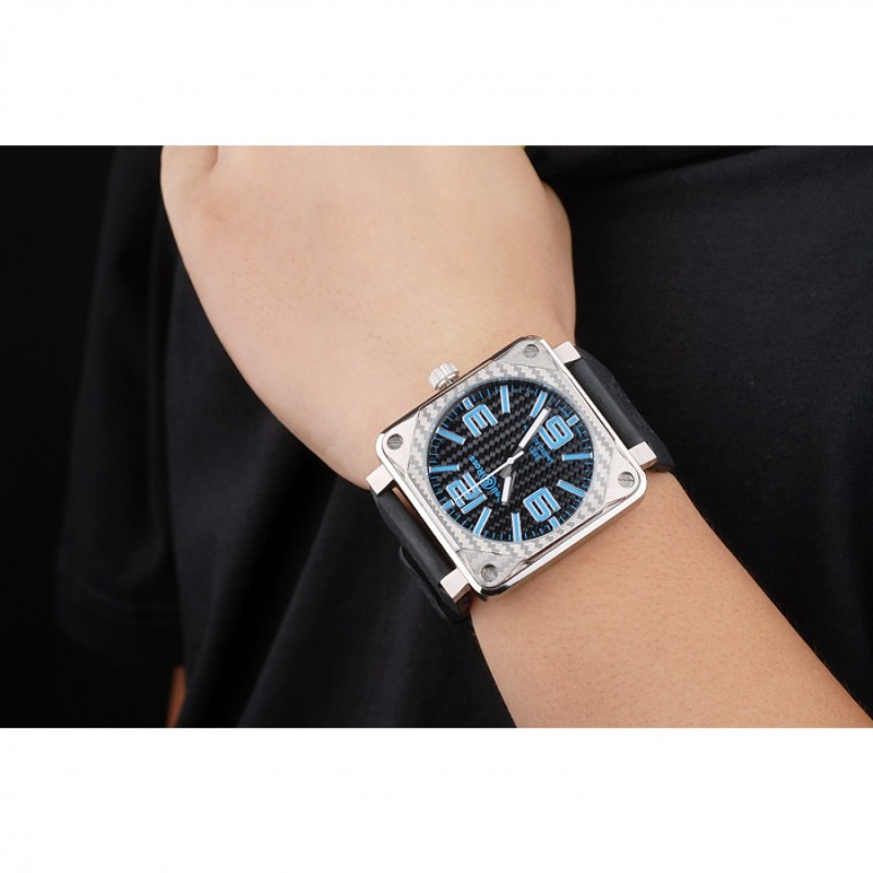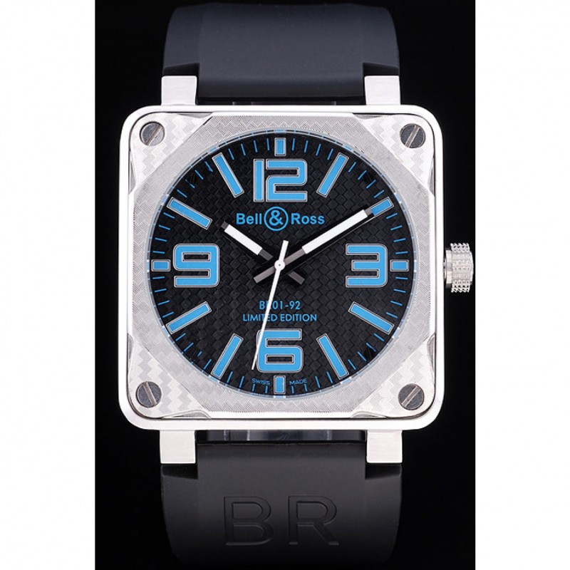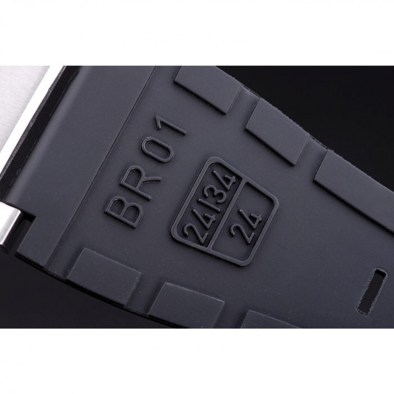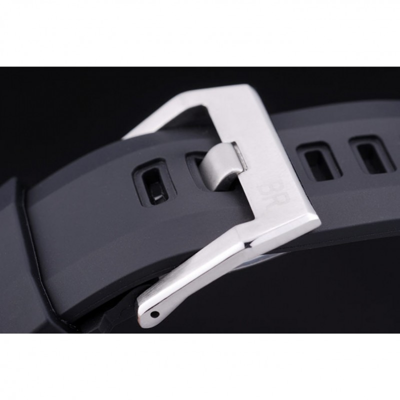 Bracelet:Bell&Ross logo et le code de produit gaufré bracelet en caoutchouc noir avec fermoir crochet-boucle en acier inoxydable