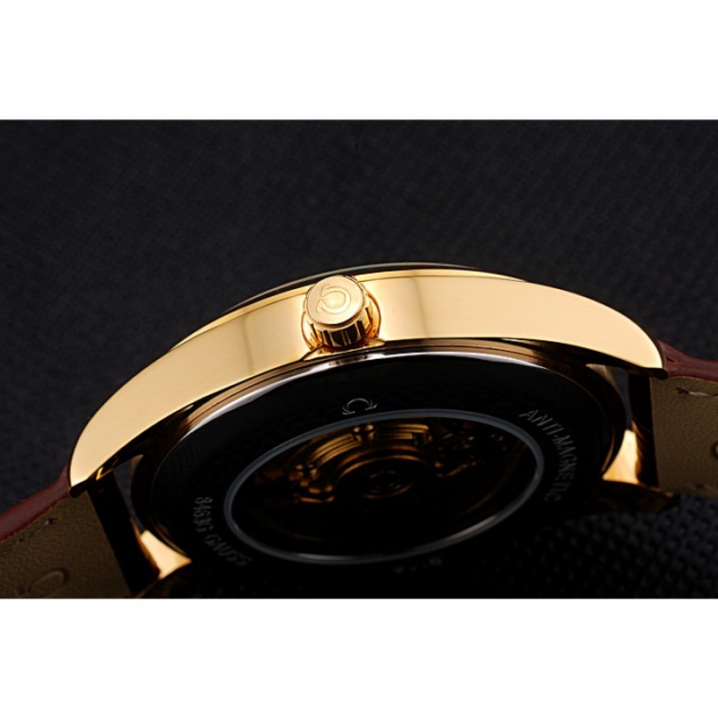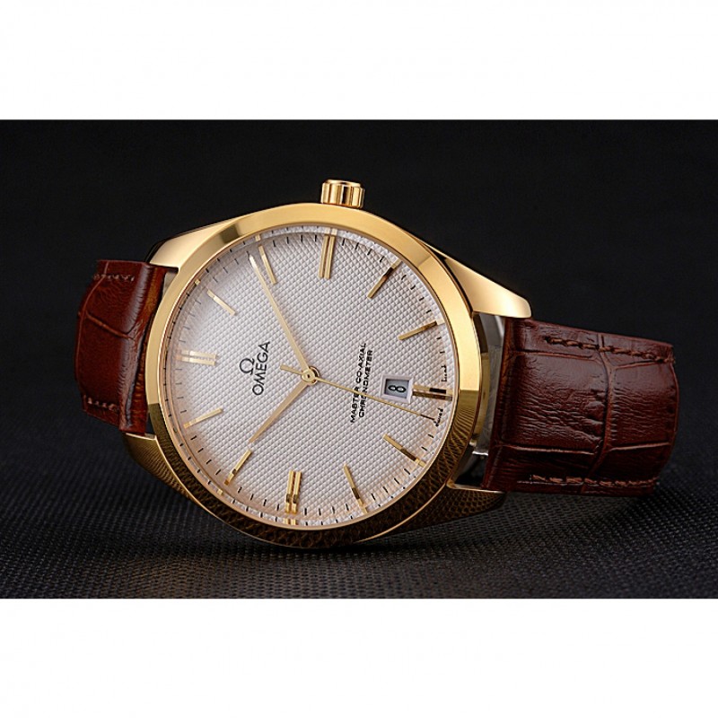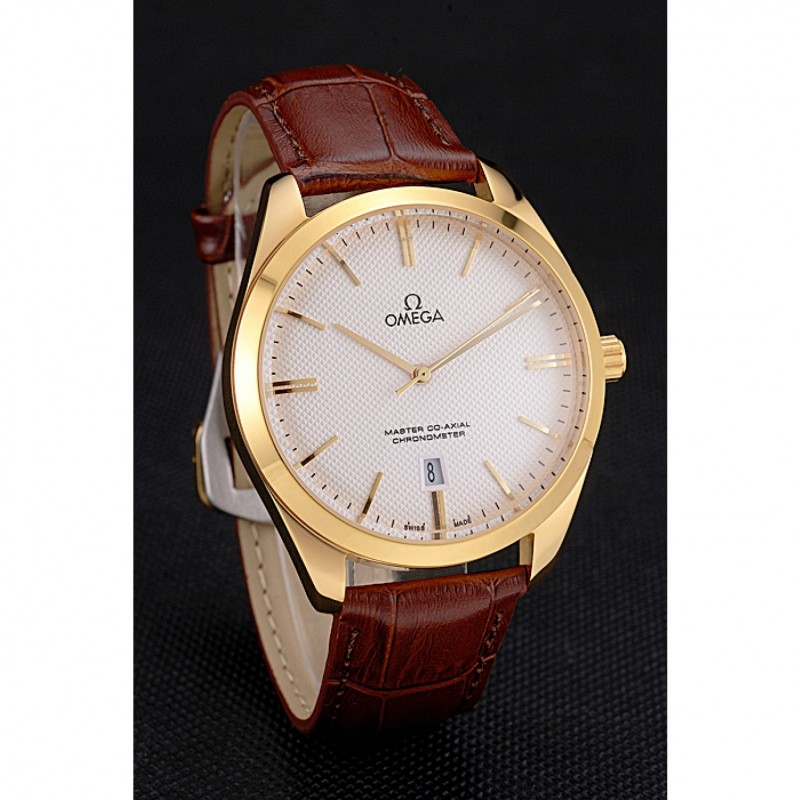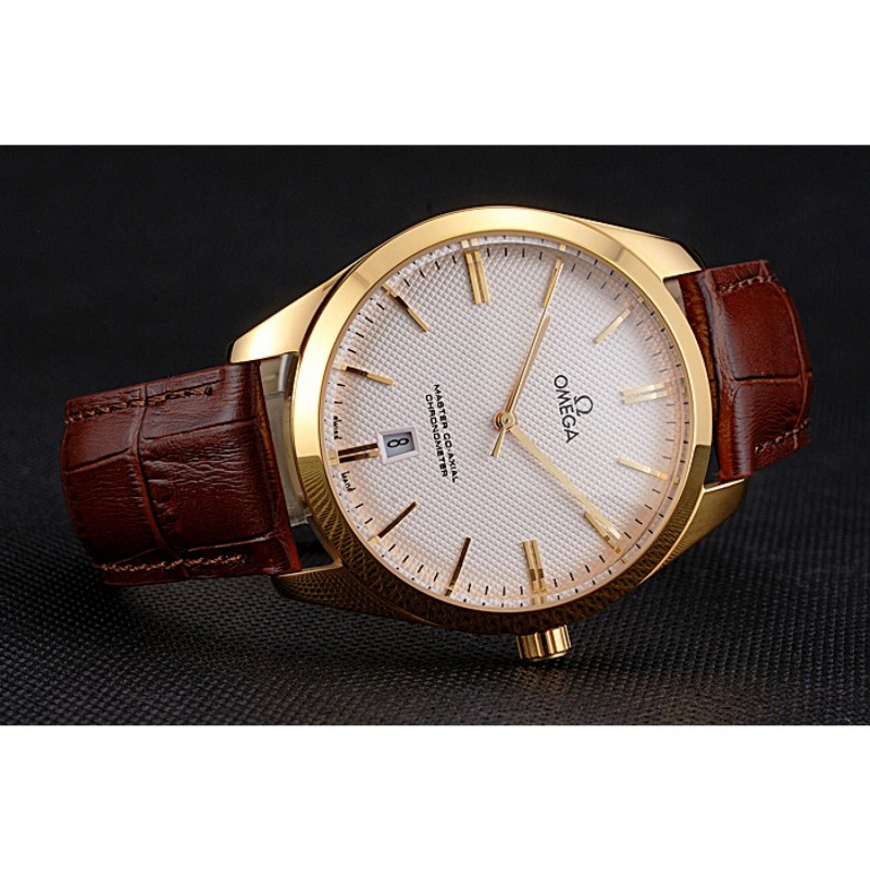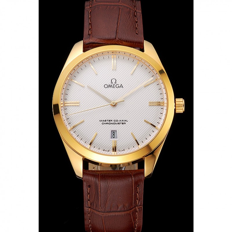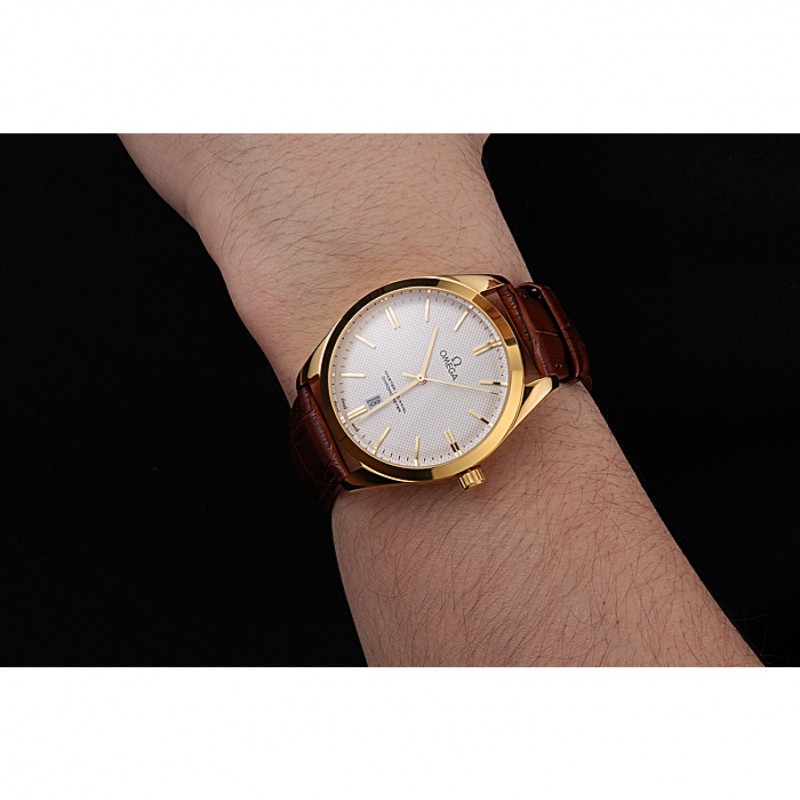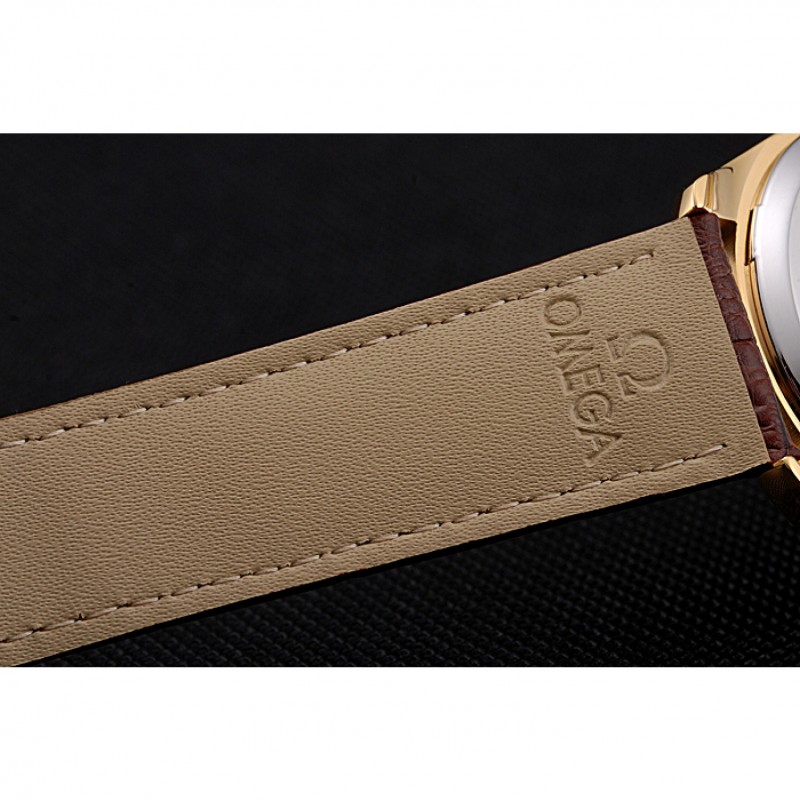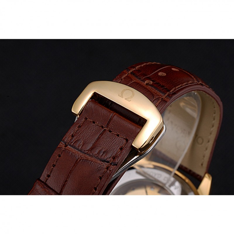 Bracelet:logo et chaleur Omega bracelet en cuir croco marron avec Omega logo gravé or jaune 18 carats plaqué fermoir crochet