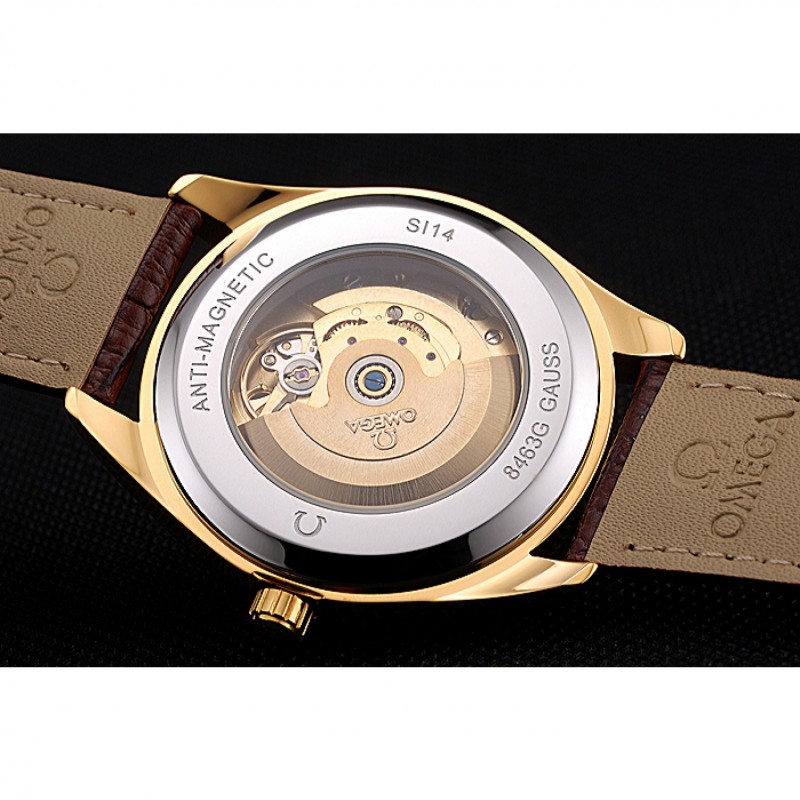 Retour:en acier inoxydable poli encliquetable à l’arrière avec la mécanique-révélateur centre et gravures Omega