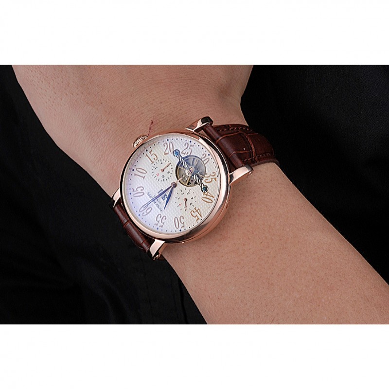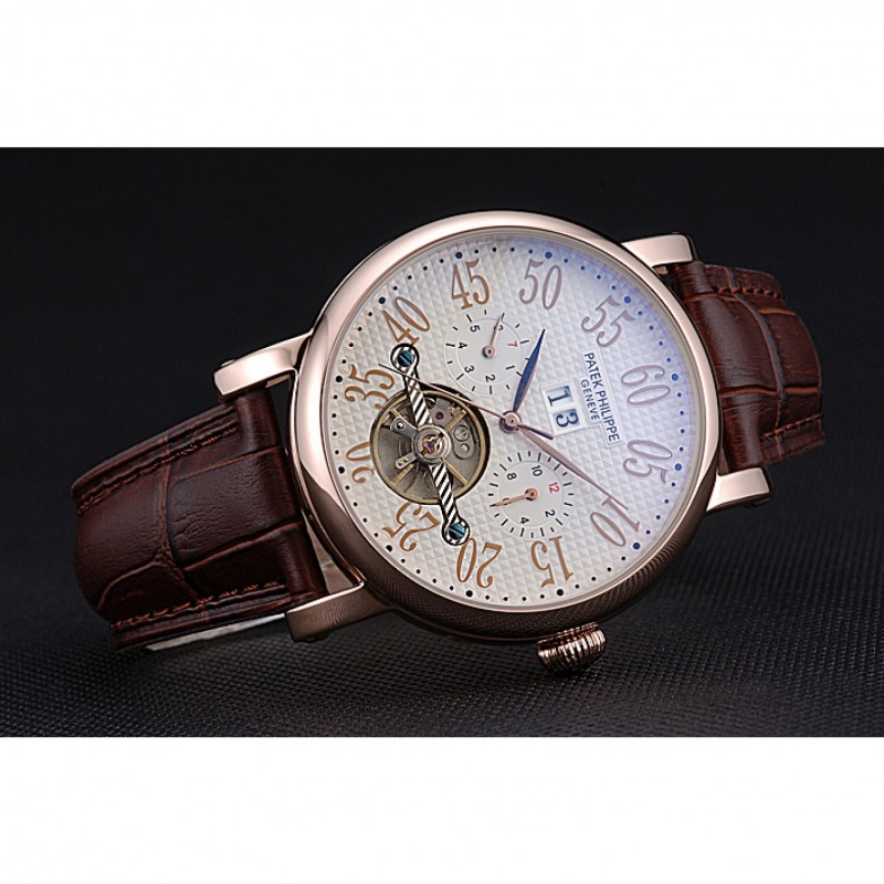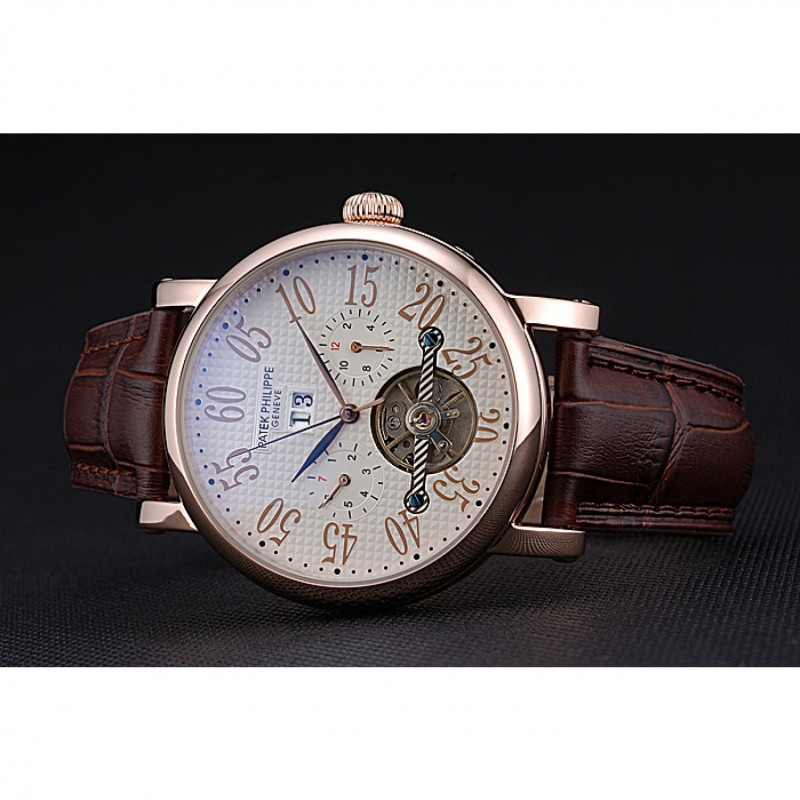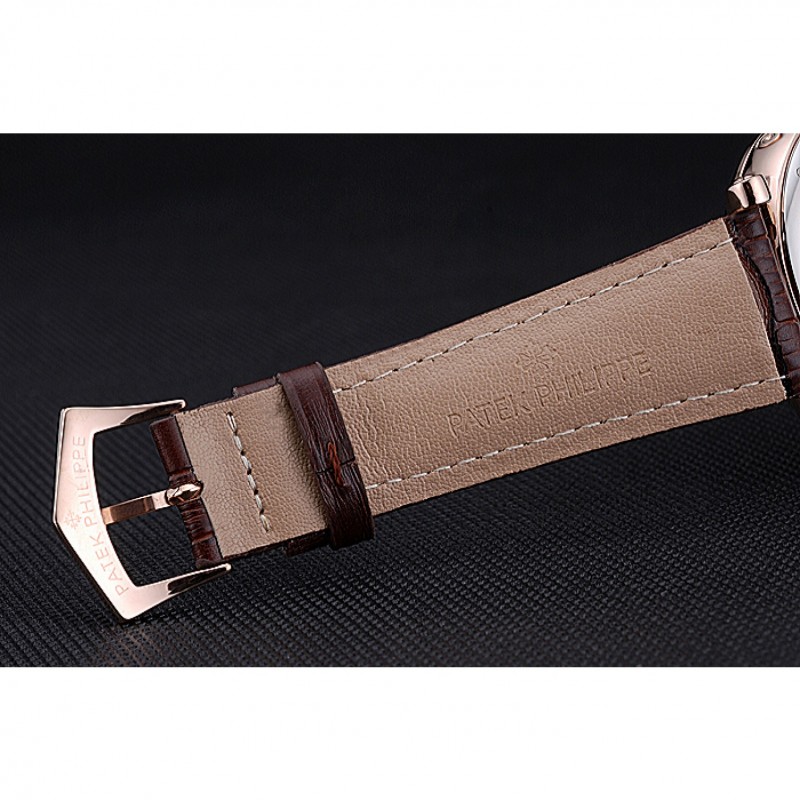 Bracelet:Logo et Patek Philippe Geneve chaleur bracelet en cuir de crocodile brun gravé 18k fermoir crochet-boucle rose-or