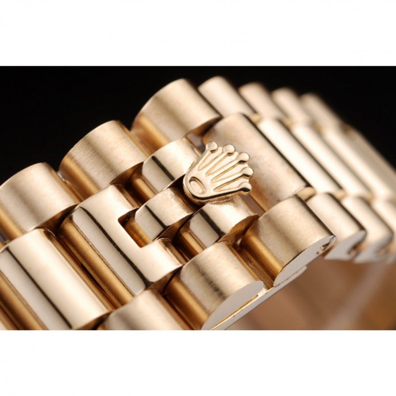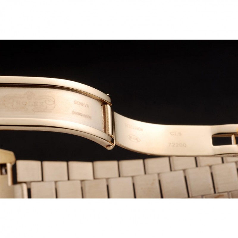 Bracelet:18k plaqué or jaune bracelet à maillons en acier inoxydable avec Rolex gravé fermoir caché affichant le logo Rolex