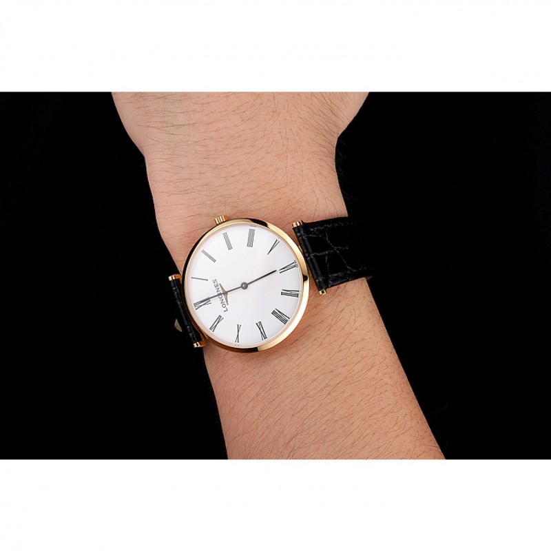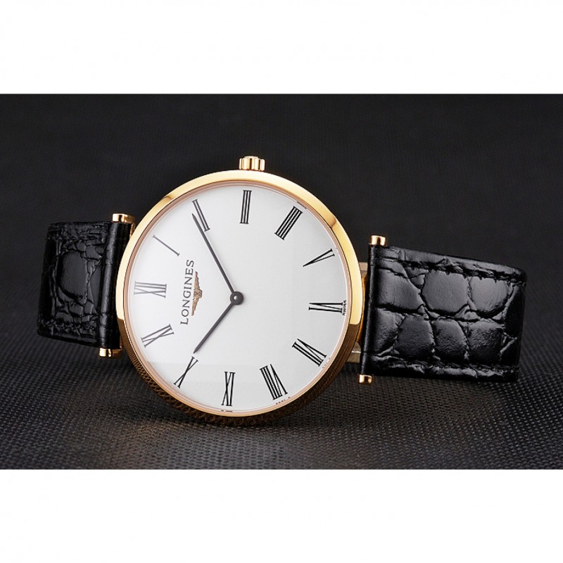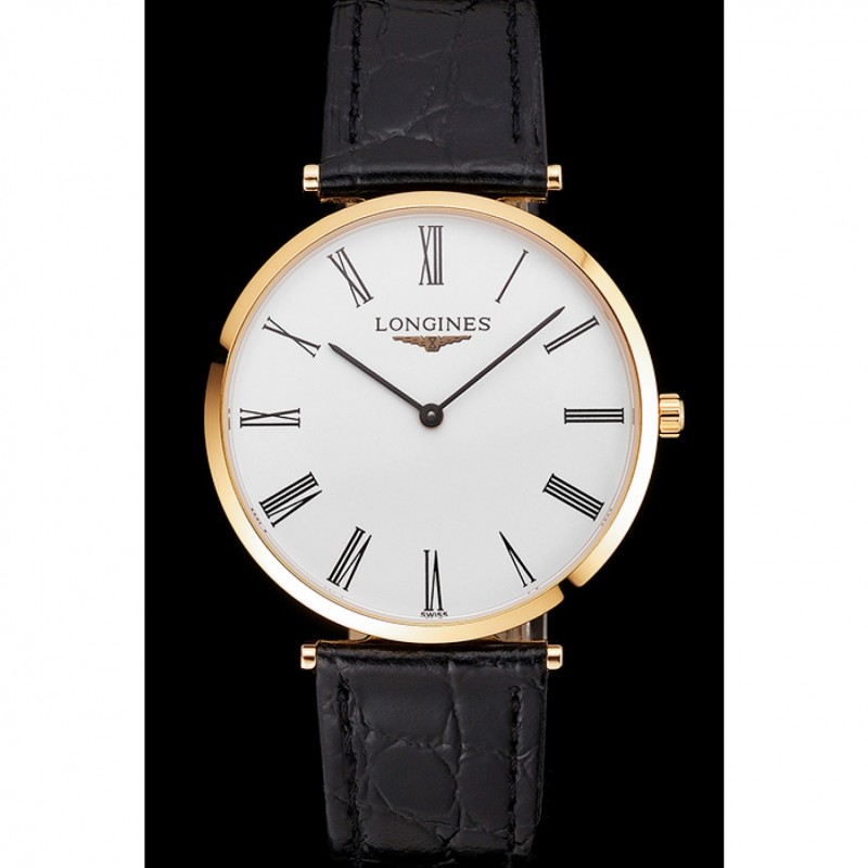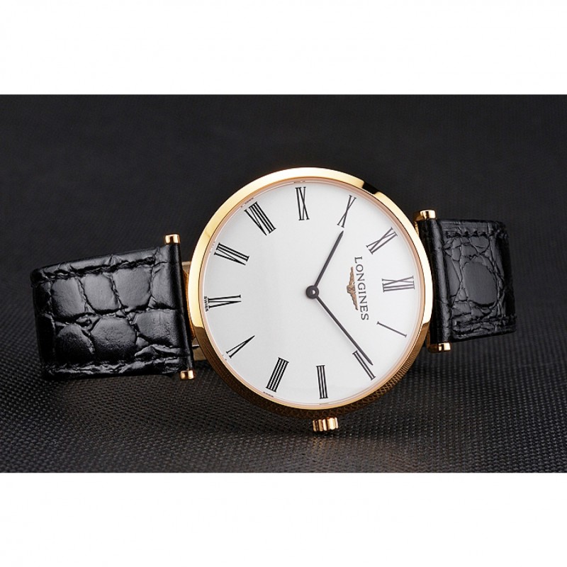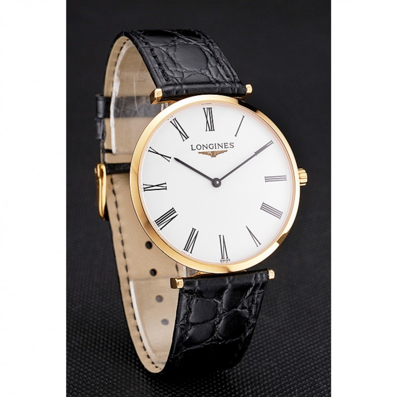 Bracelet:bracelet en cuir de crocodile noir avec logo Longines sculpté or jaune 18 carats plaqué fermoir crochet boucle