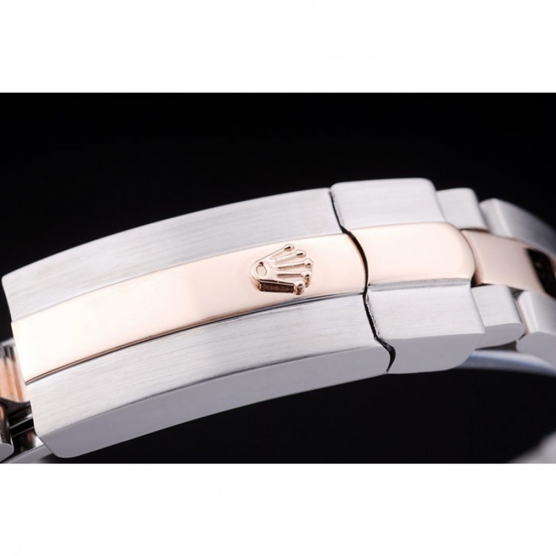 Bracelet:en acier inoxydable brossé et bracelet lien or rose avec boucle déployante logo Rolex