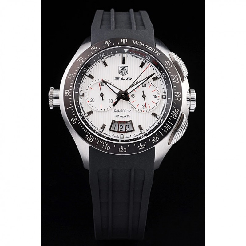 Be the first to review “Haut Gamme Tag Heuer SLR Suisse Tachymeter Bezel bracelet en caoutchouc noir cadran blanc”