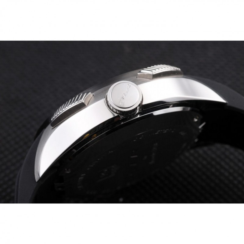 Bracelet:bracelet en caoutchouc noir avec libération bouton-poussoir en acier inoxydable brossé plier en boucle avec gravure reflex