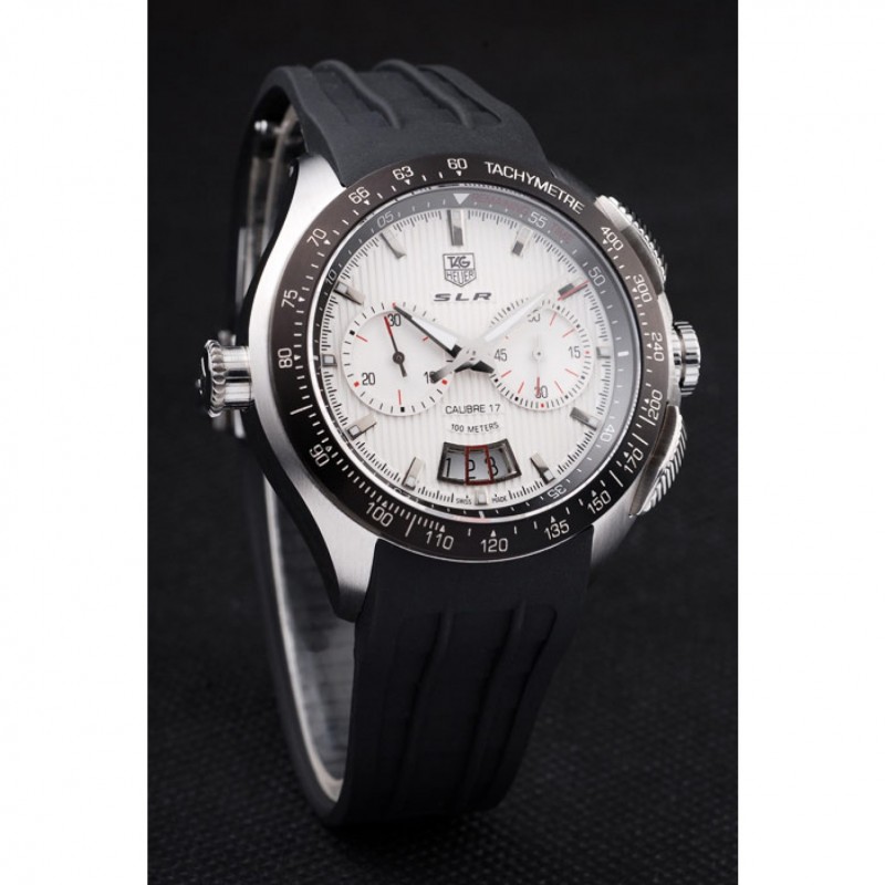 Haut Gamme Tag Heuer SLR Suisse Tachymeter Bezel bracelet en caoutchouc noir cadran blanc