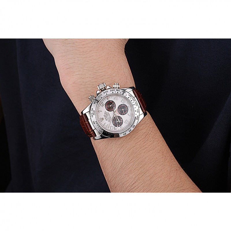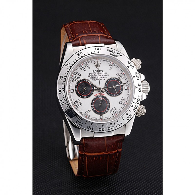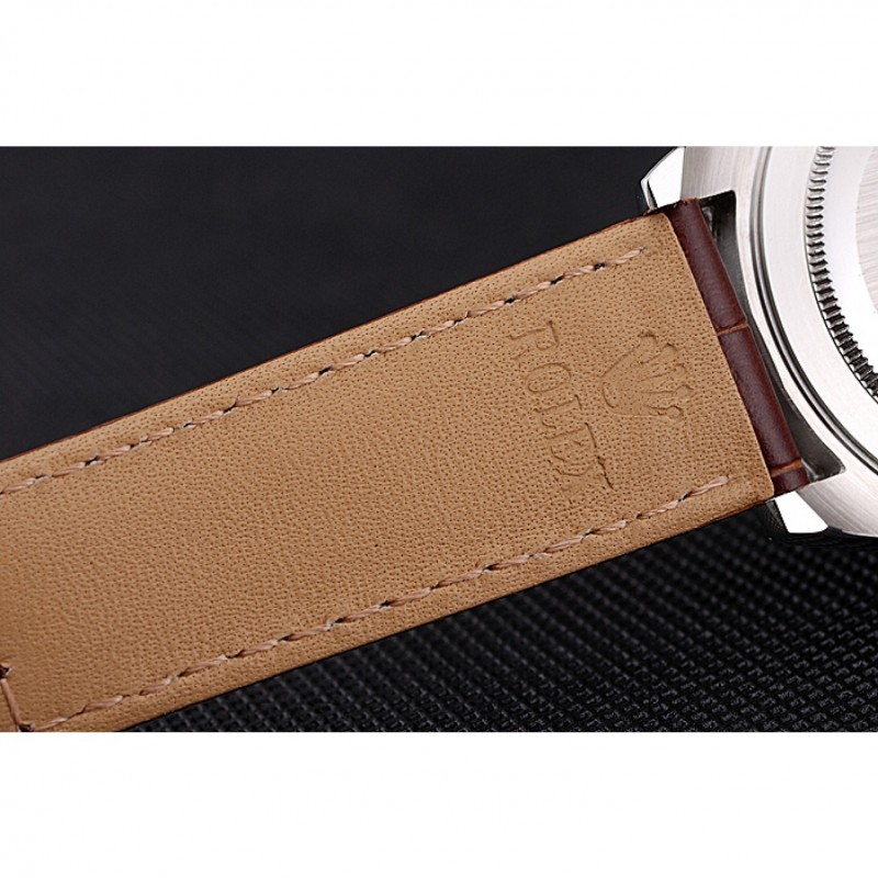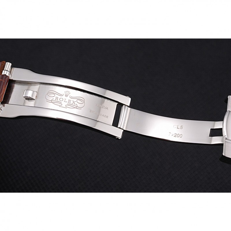Bracelet:chaleur Rolex en relief crocodile bracelet en cuir brun avec boucle déployante en acier inoxydable gravé avec le logo de Rolex sur