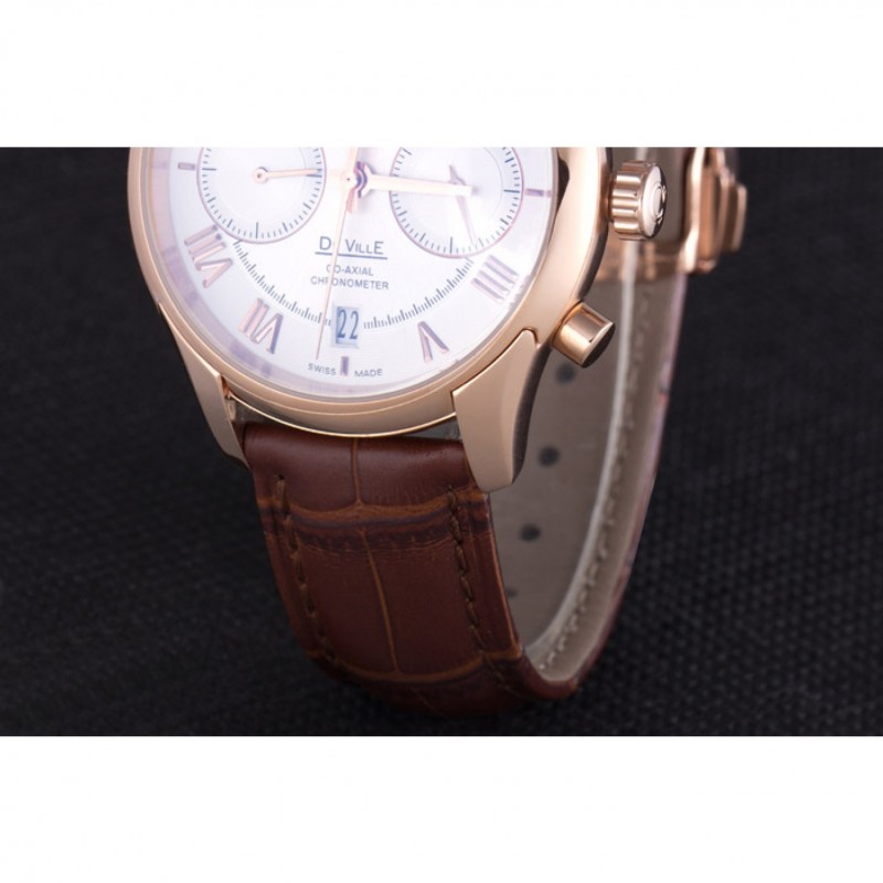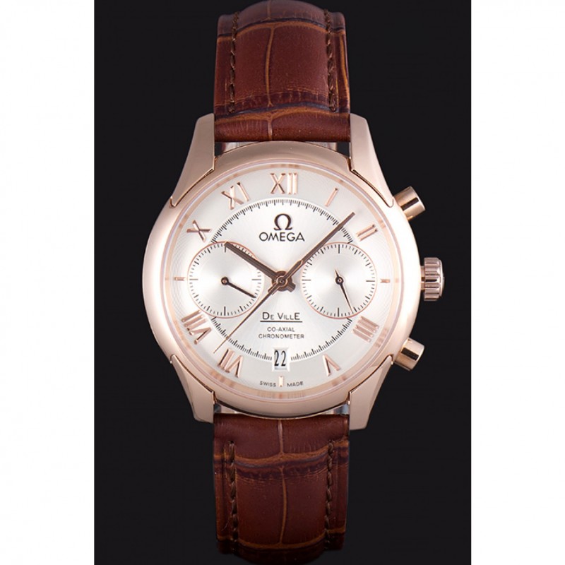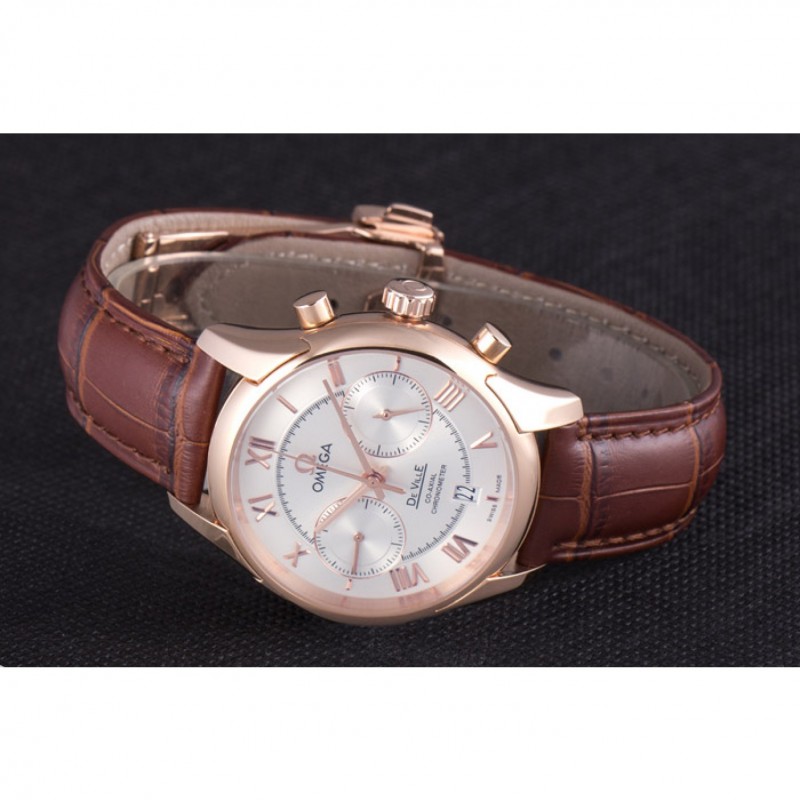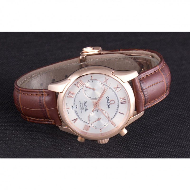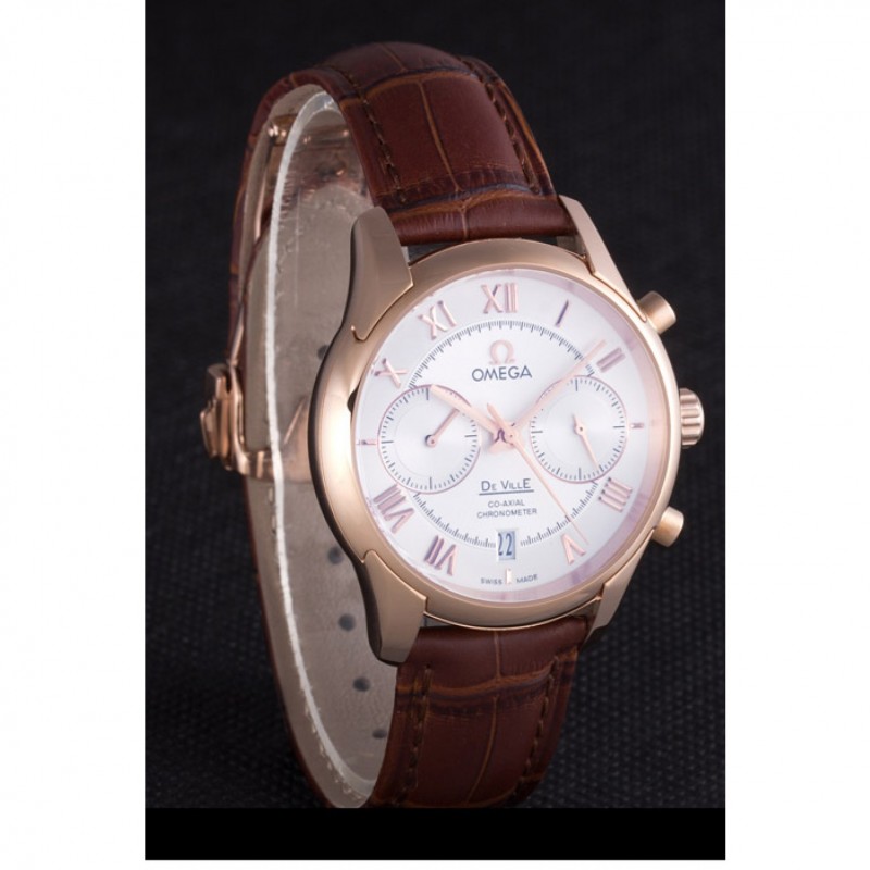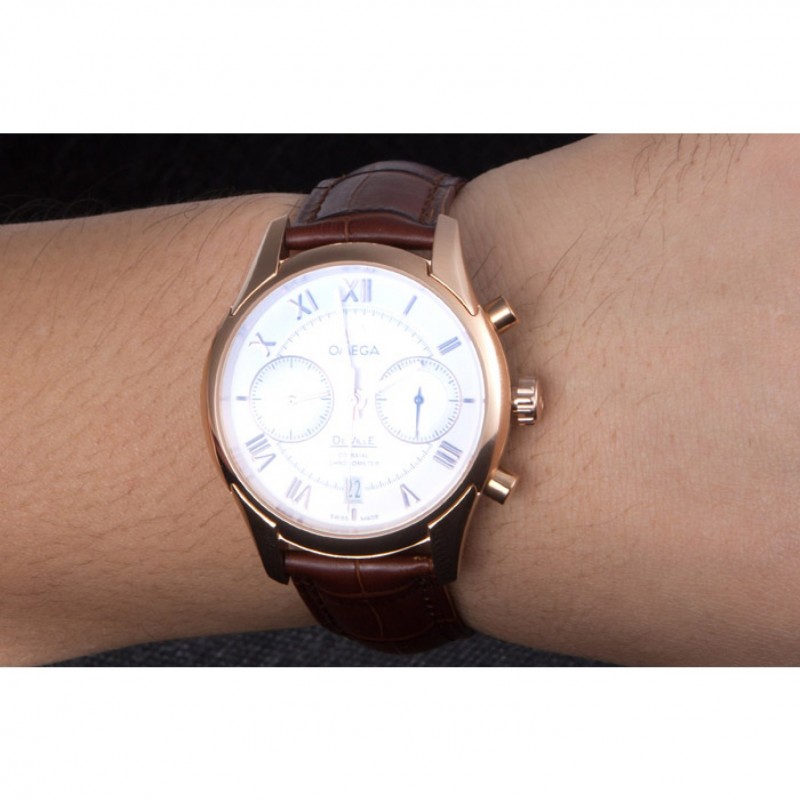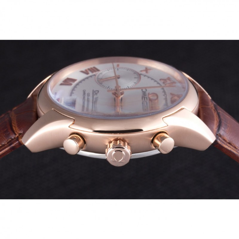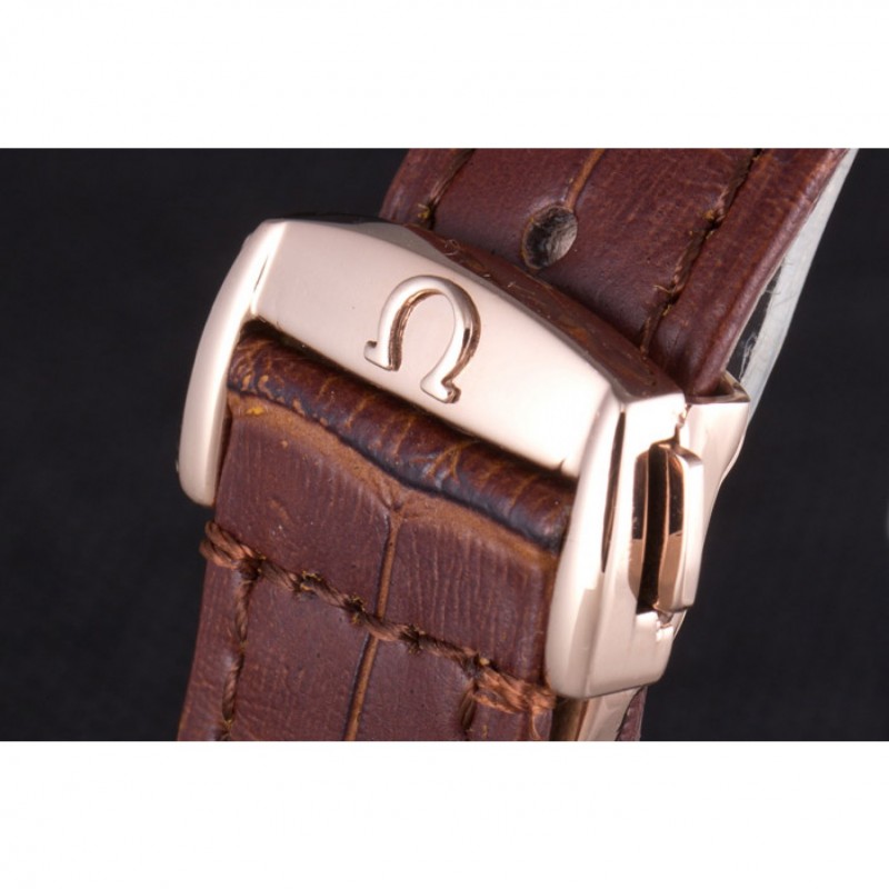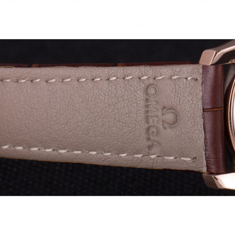 Bracelet:Omega, le logo et le code produit de la chaleur bracelet en cuir de crocodile brun en relief avec le logo 18k gravé en or rose plaqué bouton-libération fermoir crochet