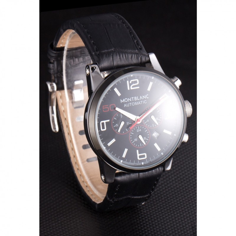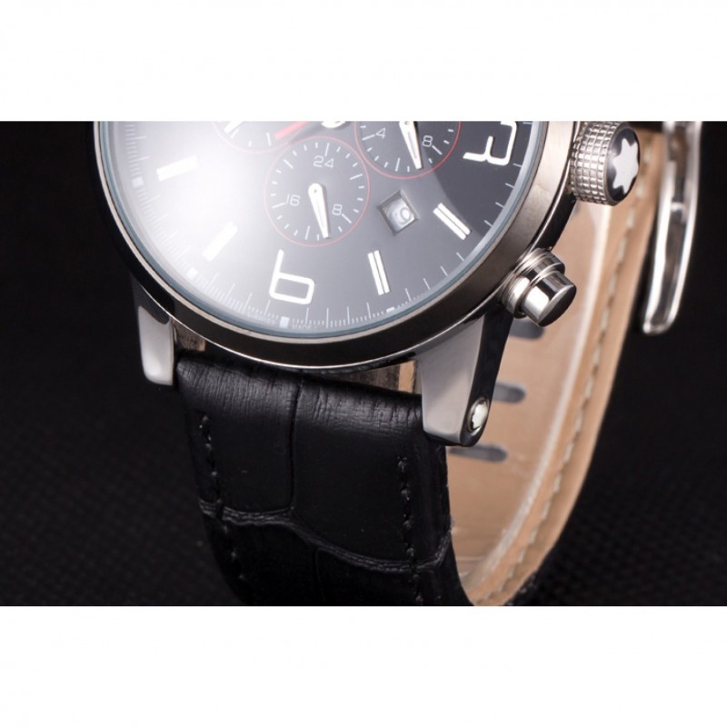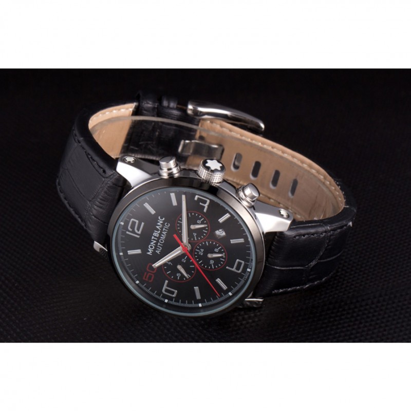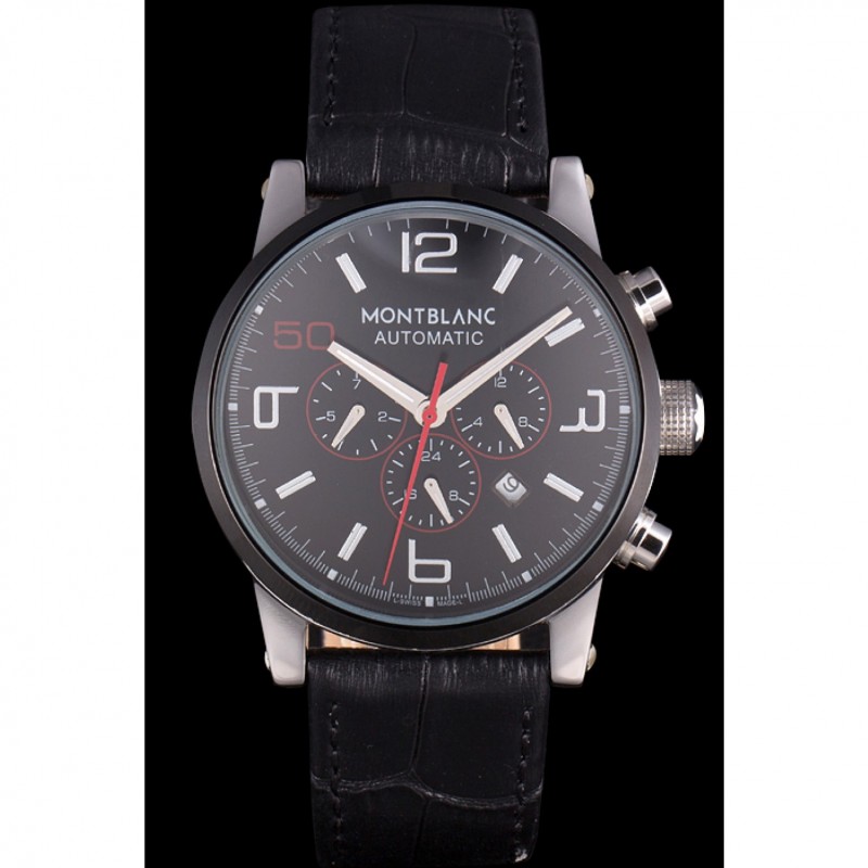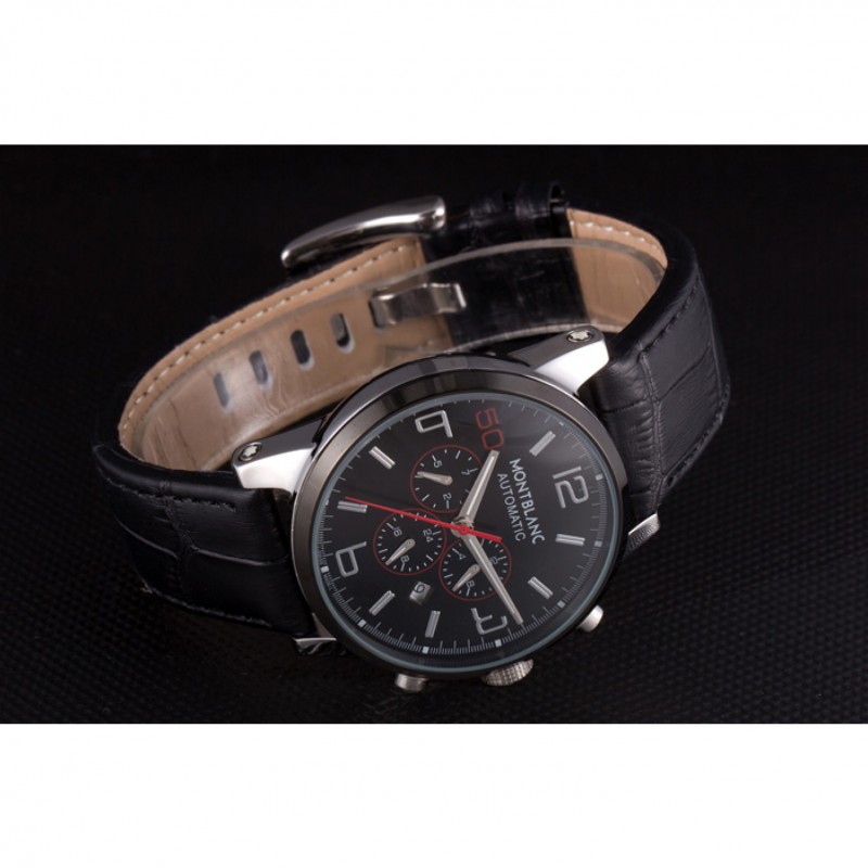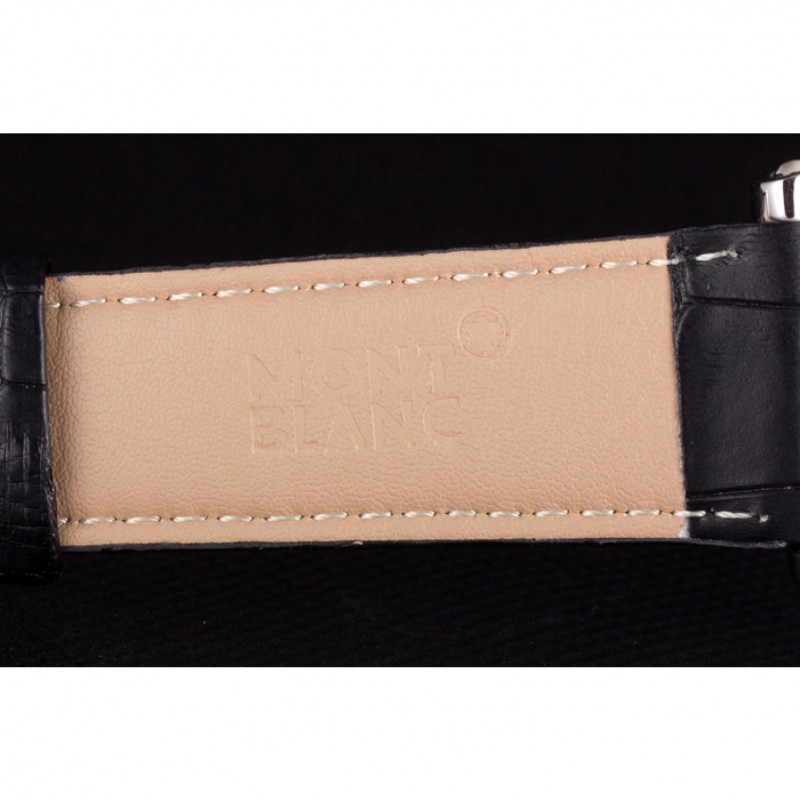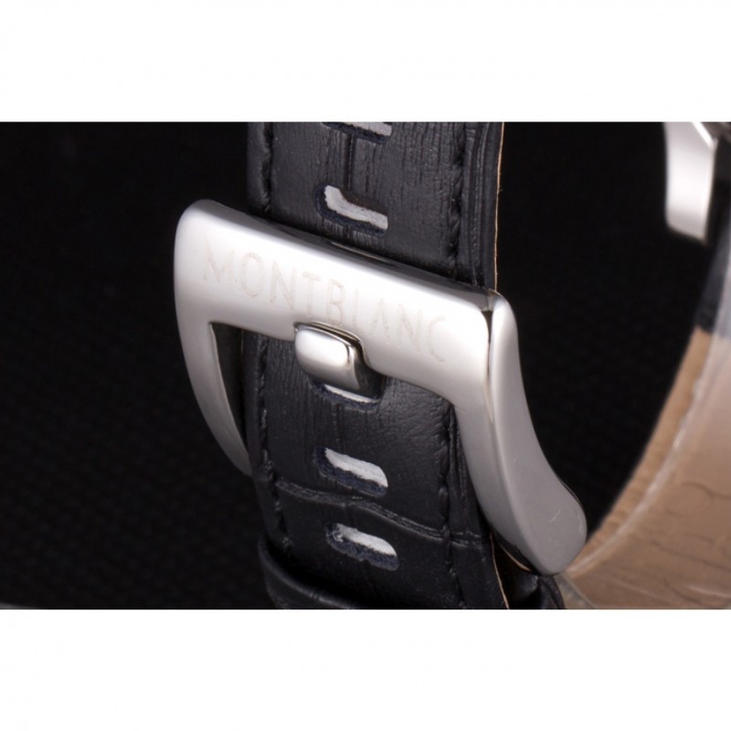 Bracelet:MontBlanc chaleur en relief bracelet en cuir crocodile noir avec MontBlanc gravé fermoir crochet-boucle en acier inoxydable poli