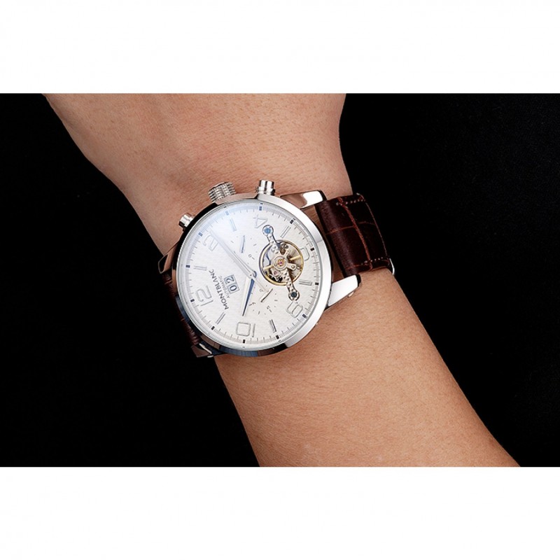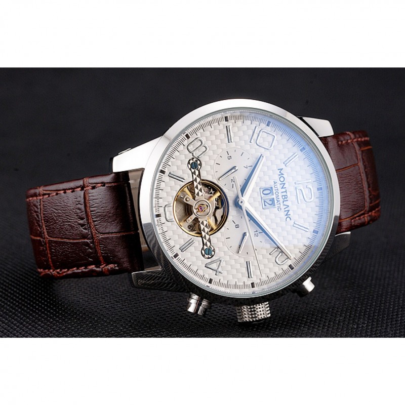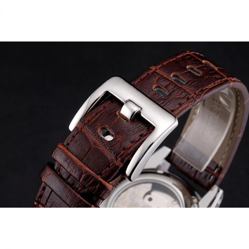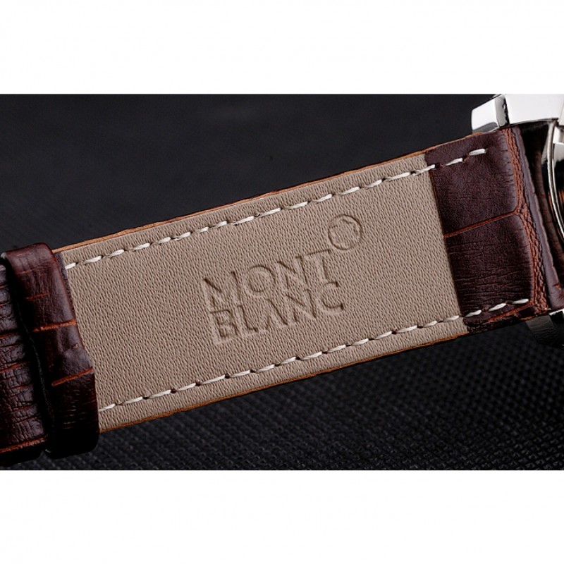 Bracelet:MontBlanc chaleur en relief crocodile brun bracelet en cuir avec logo MontBlanc acier inoxydable gravé poli fermoir à crochet caché
