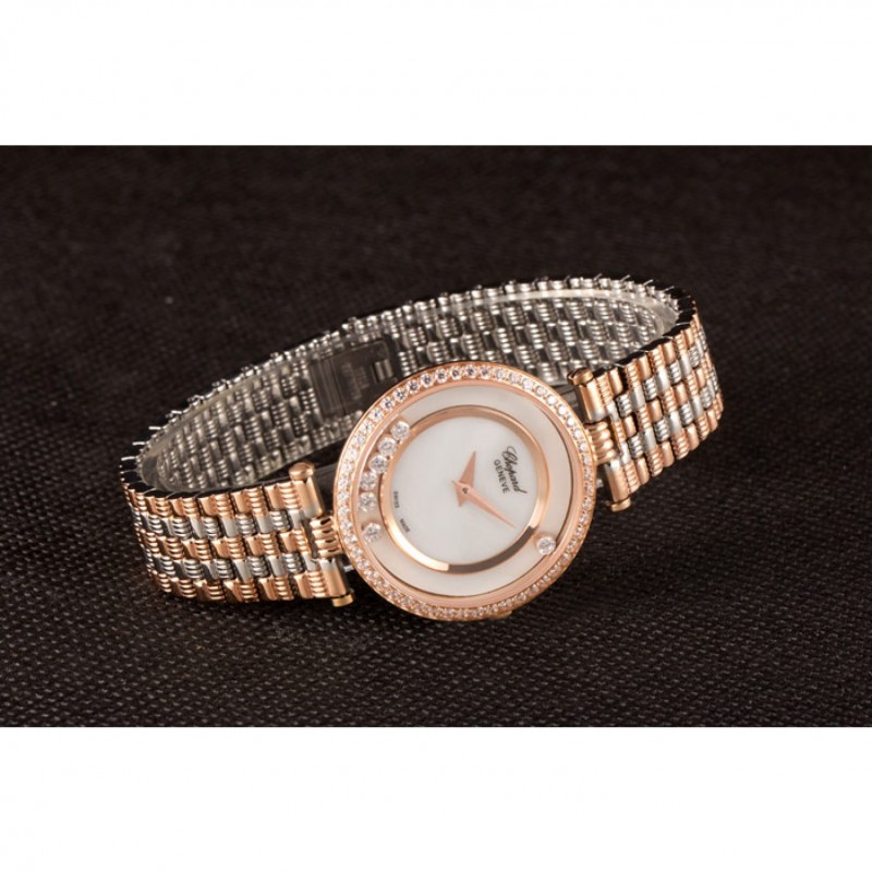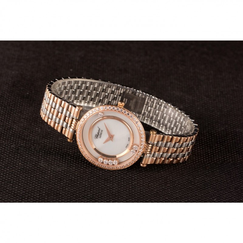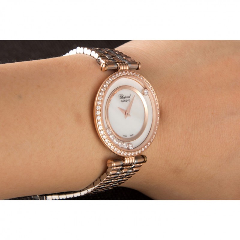 bracelet:18k or rose plaqué et acier inoxydable poli bracelet lien cutwork avec Chopard gravé boucle déployante