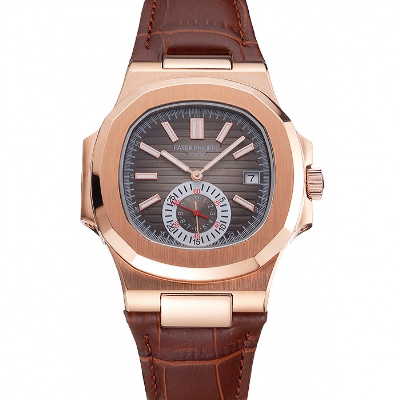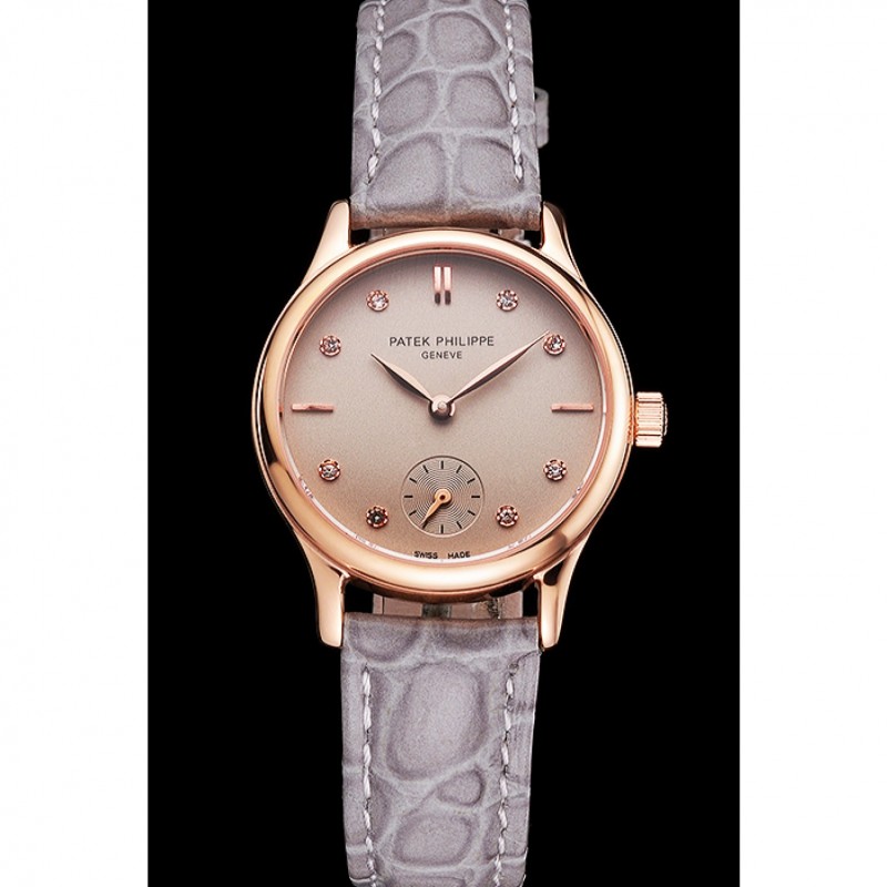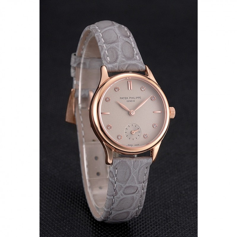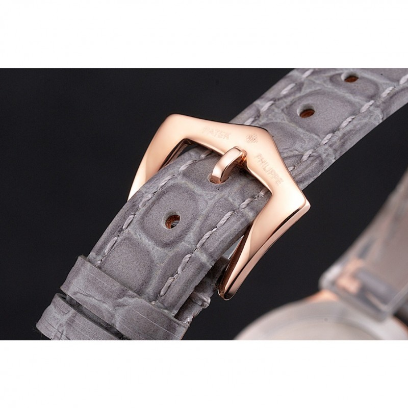 Bracelet:Patek Philippe et la chaleur de logo en relief sangle crocodile en cuir gris avec Patek Philippe et logo inscrit 18k rose plaqué or fermoir crochet-boucle
