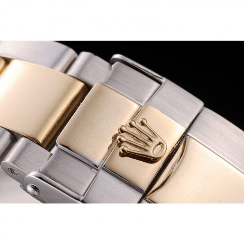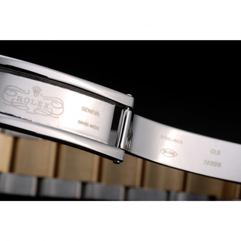 Bracelet:plaqué or jaune et brossé bracelet à maillons en acier inoxydable avec boucle déployante gravé avec le logo Rolex sur