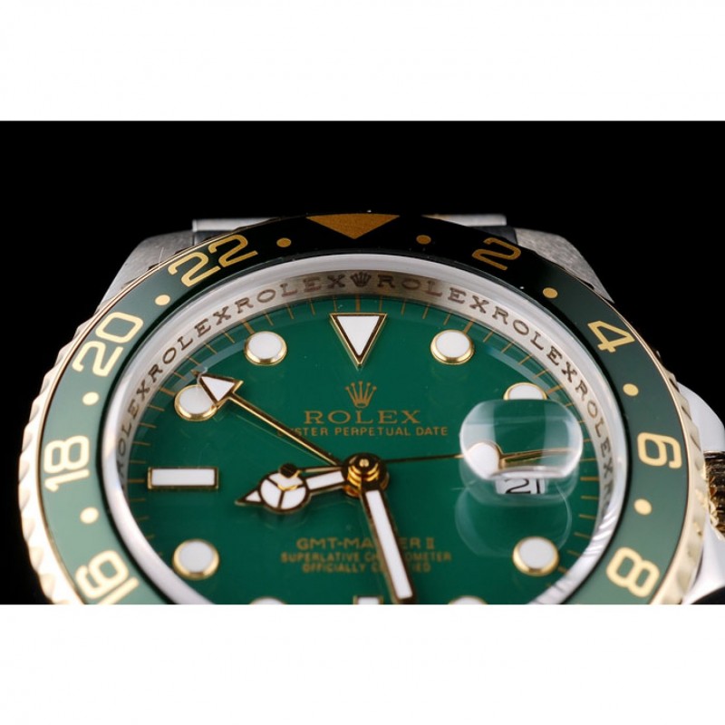 Bezel:vert lunette cutwork en céramique avec un indice d’or et des marqueurs minute chiffres arabes