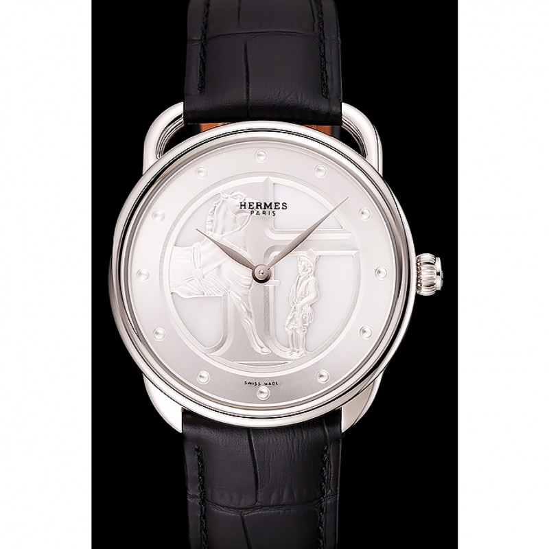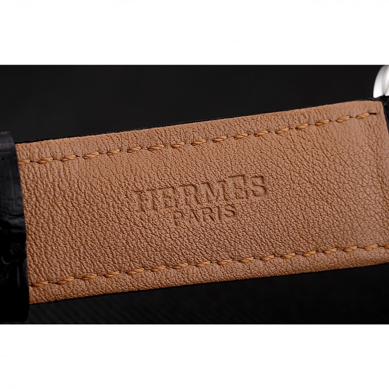 Bracelet:Hermes Paris chaleur bracelet en cuir estampé crocodile noir avec insigne inscrit fermoir crochet-boucle en acier inoxydable poli