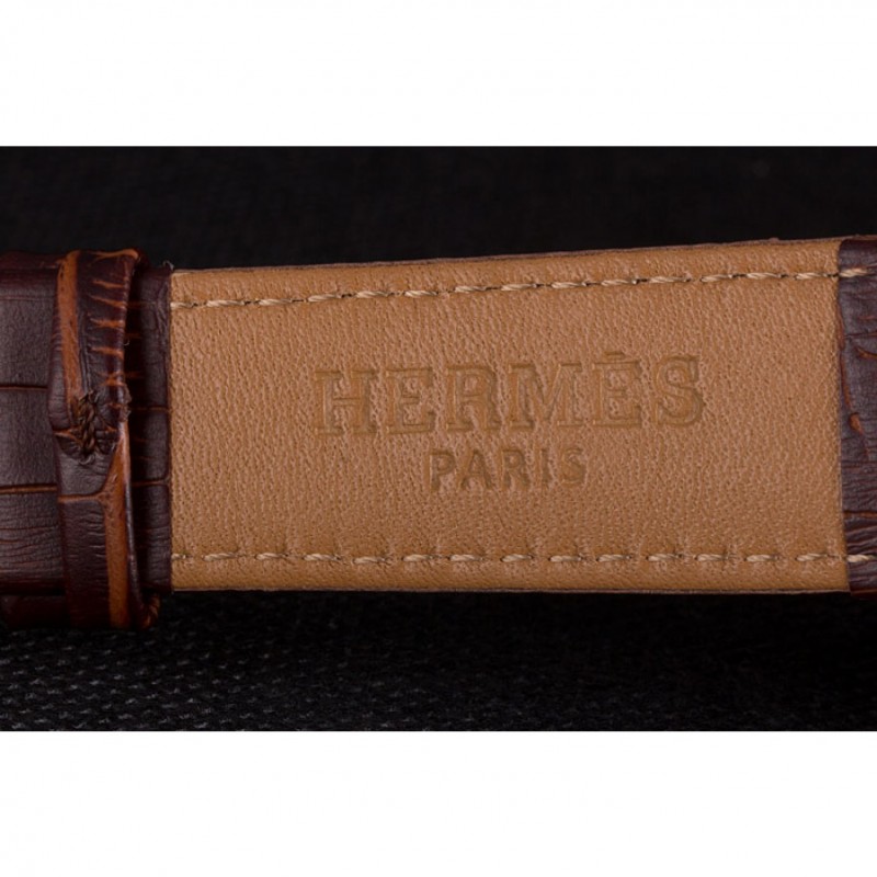 Bracelet:Hermes Paris chaleur en relief crocodile brun bracelet en cuir avec insigne 18k inscrit rose plaqué or fermoir crochet-boucle