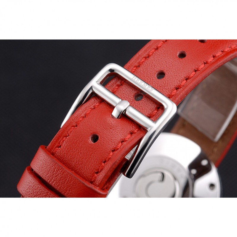 Bracelet:Red bracelet en cuir de crocodile avec de la chaleur en relief Bracelet timbre Hermes et Hermes gravé fermoir crochet-boucle en acier inoxydable poli
