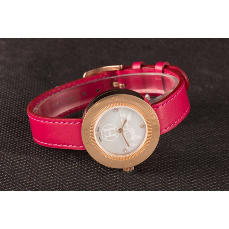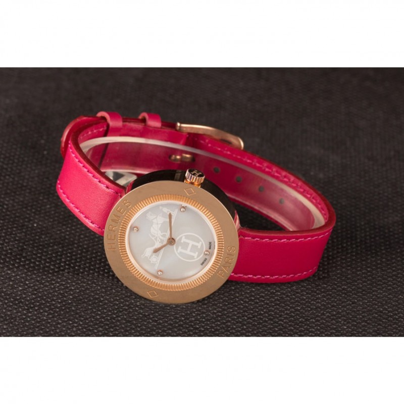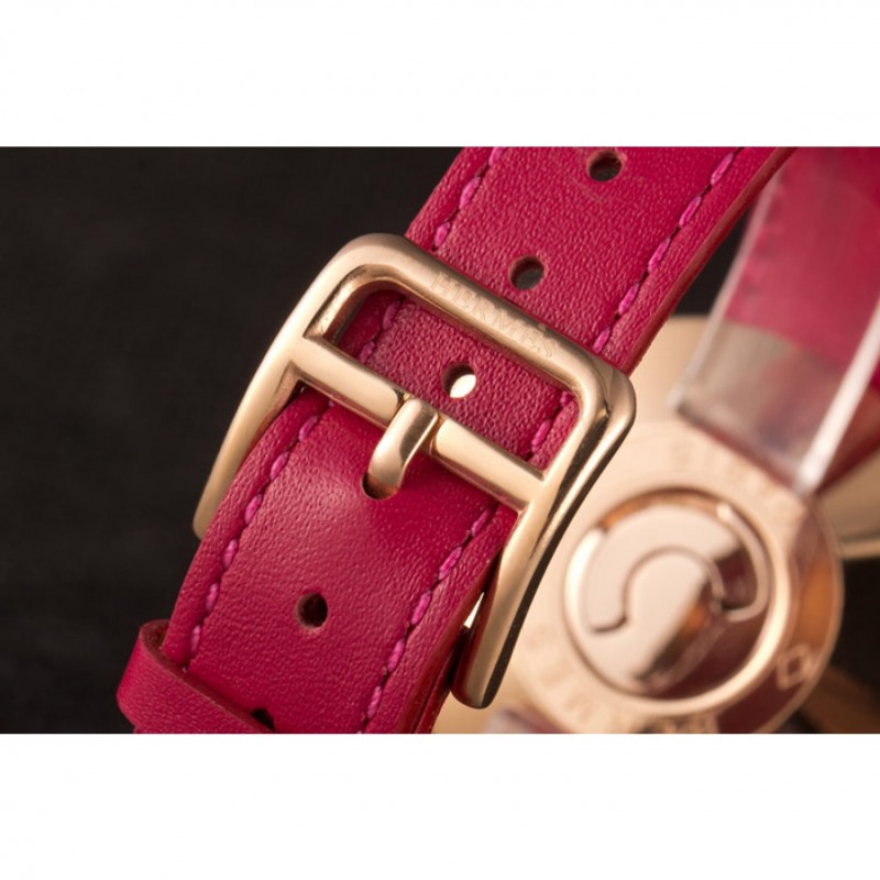 Bracelet:chaleur Hermes bracelet en cuir magenta gravé Hermes gravé 18k rose plaqué or fermoir crochet-boucle