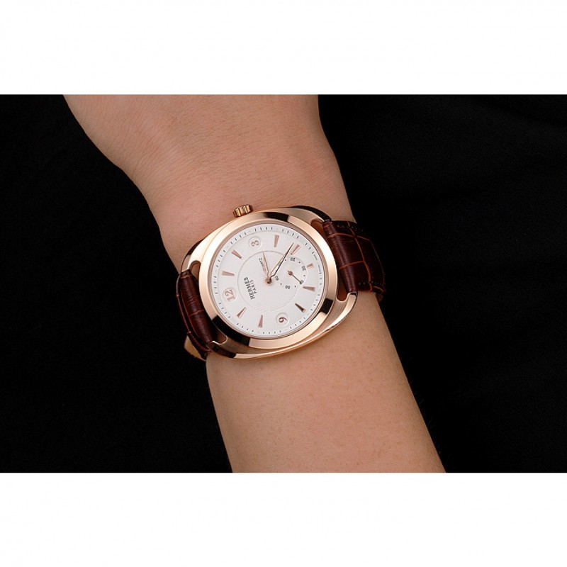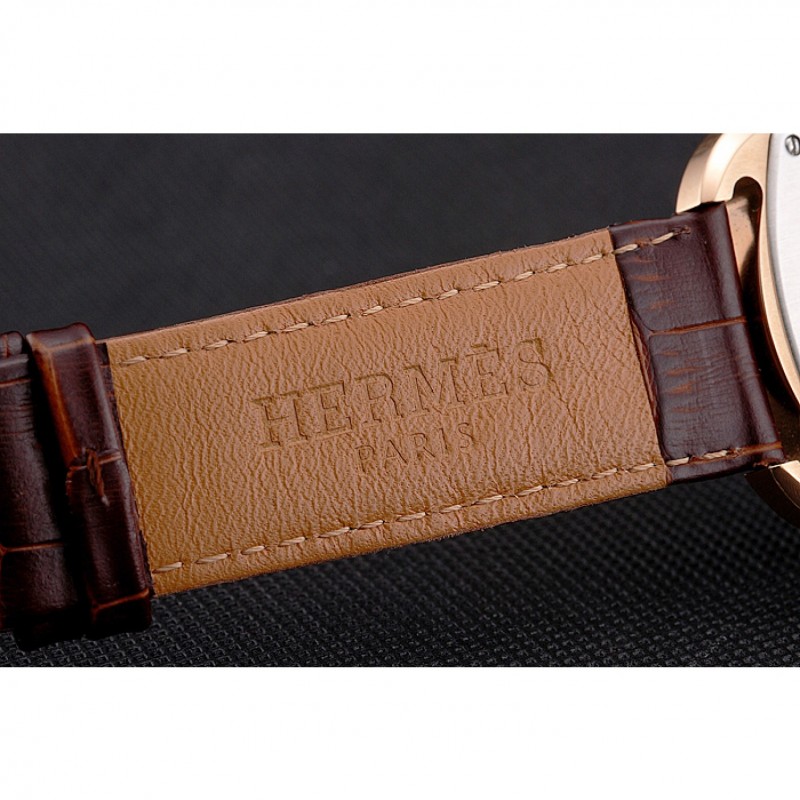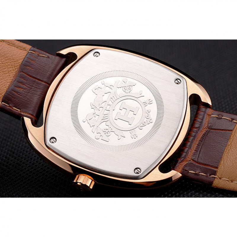 Retour:acier inoxydable poli vissé dans le dos avec des gravures d’insignes Hermès et logo