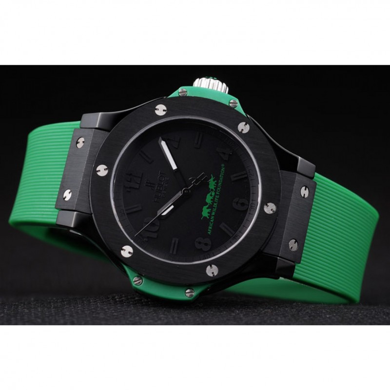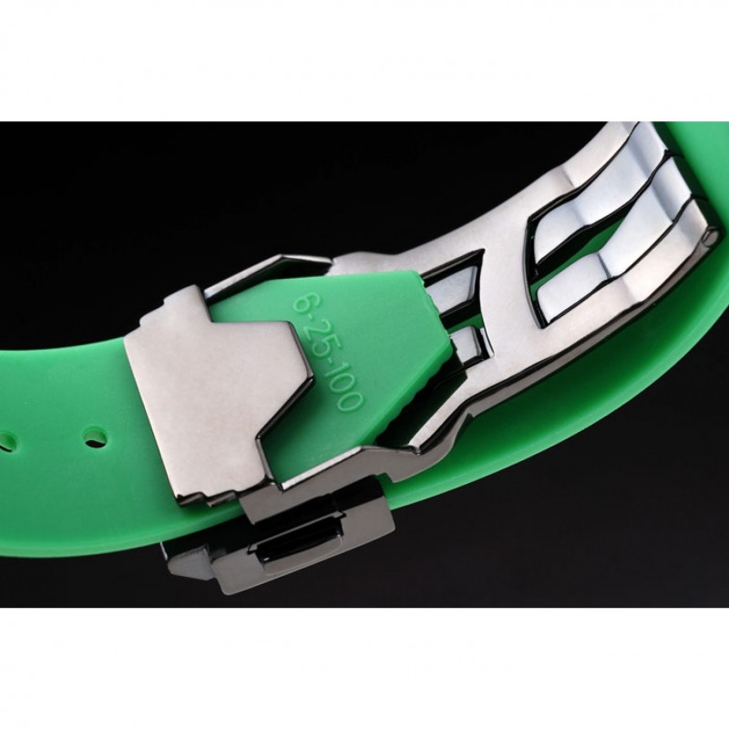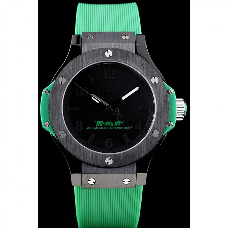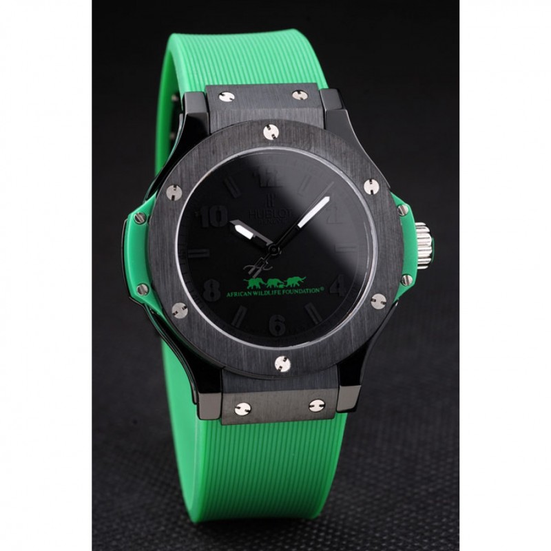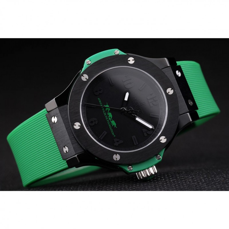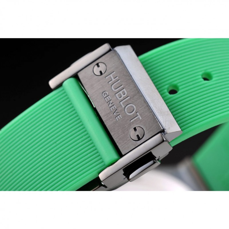 Bracelet:Hublot chaleur Geneve en relief bracelet en caoutchouc vert nervuré avec Hublot Geneve gravée brossé fermoir à crochet de libération de pression en acier inoxydable