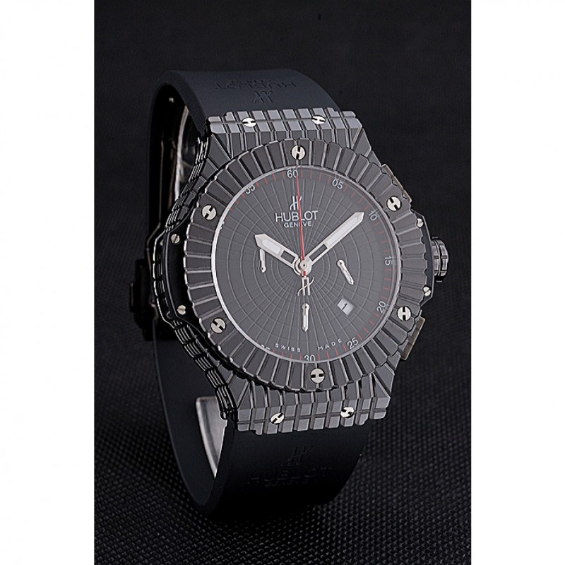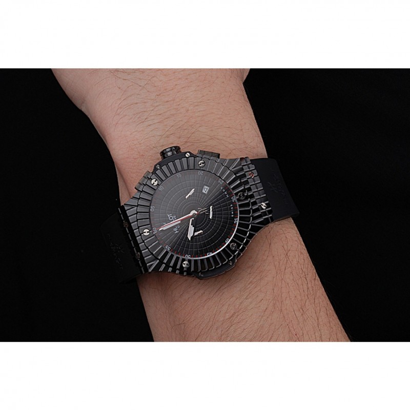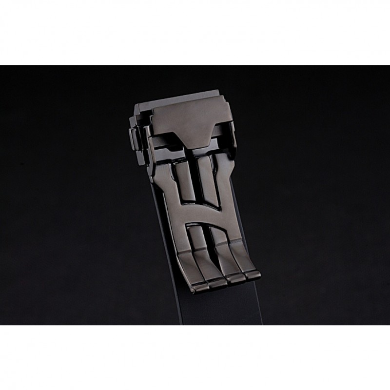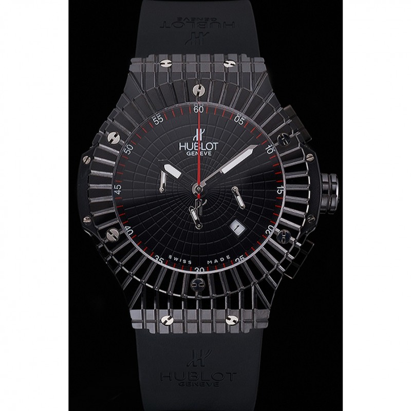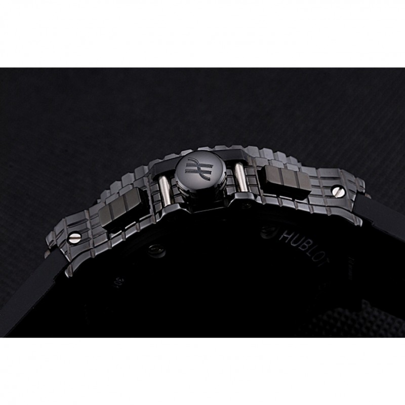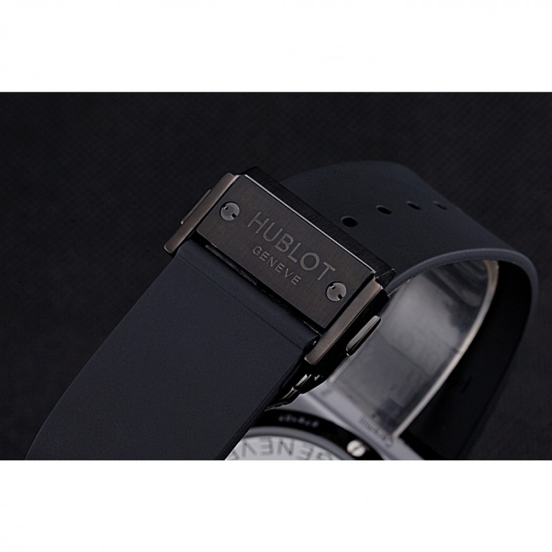 Bracelet:Hublot Geneve et la chaleur de logo en relief bracelet en caoutchouc noir avec Hublot Geneve gravé poussoir à libération fermoir à crochet placage ionique