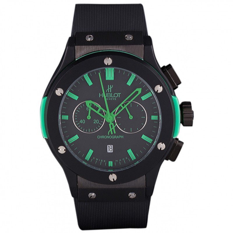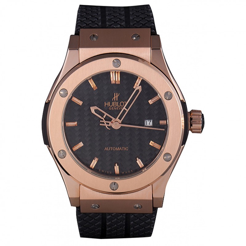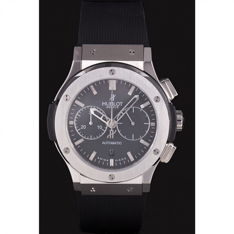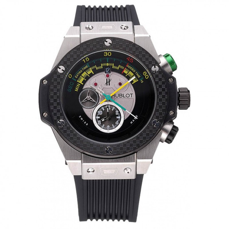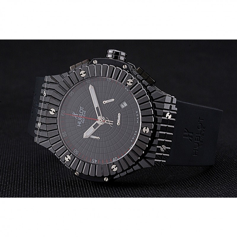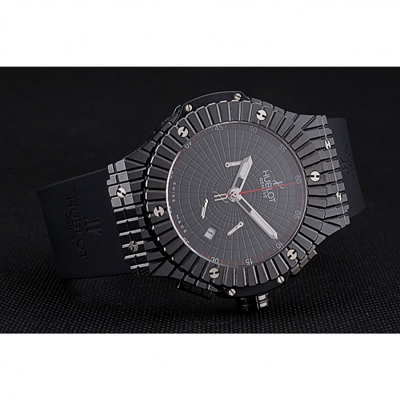 Bracelet:Hublot Geneve et la chaleur de logo en relief bracelet en caoutchouc noir avec Hublot Geneve gravé poussoir à libération fermoir à crochet placage ionique