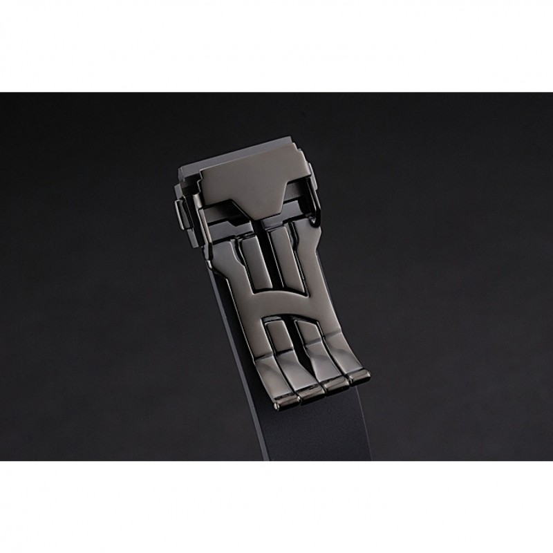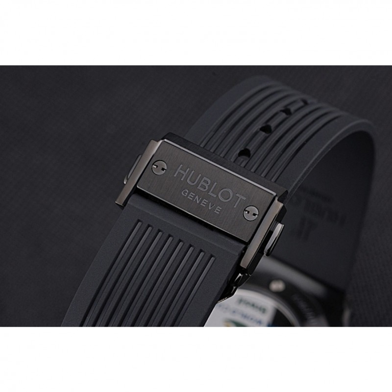 Bracelet:Logo et Hublot Geneve chaleur en relief bracelet en caoutchouc noir nervuré avec Hublot Geneve gravée push-libération fermoir à crochet placage ionique