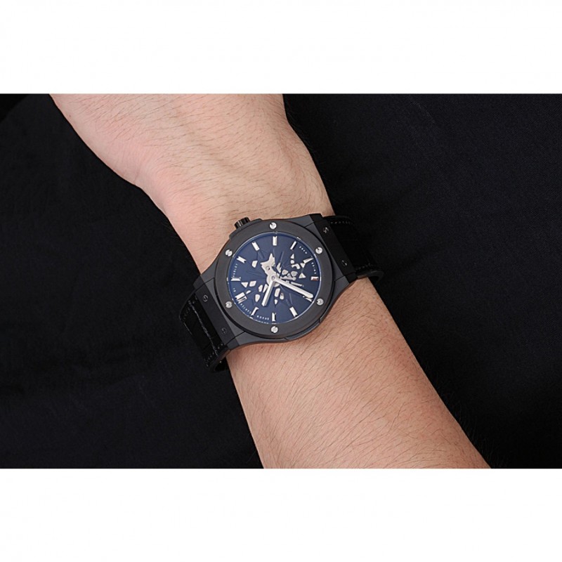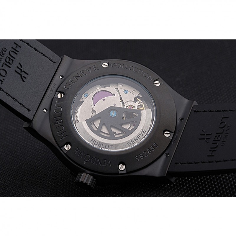 Retour:Ion-plaqué vissé vers le bas retour à la mécanique transparentes révélant centre et gravures Hublot Geneve