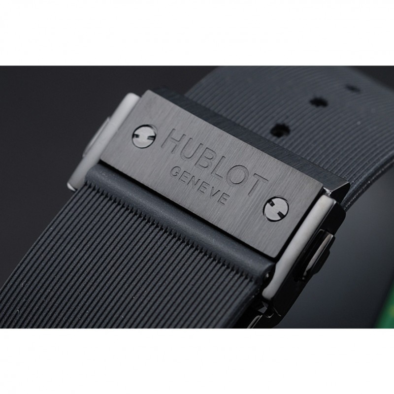 Bracelet:logo de chaleur en relief et Hublot Geneve bracelet en caoutchouc noir avec Hublot Geneve gravé fold over ions plaqué fermoir à crochet poussoir de déverrouillage