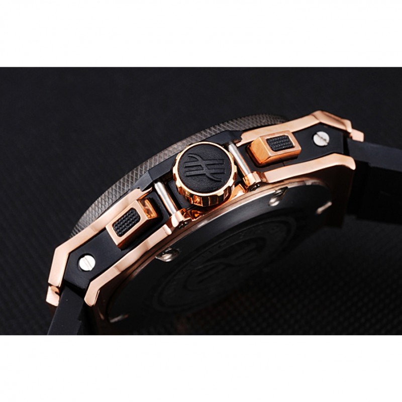 Couronne:Rose-plaqué or couronne cutwork avec logo Hublot goujon en caoutchouc et le goujon en caoutchouc rose-or couronne bouton-poussoir de chaque côté de celui-ci