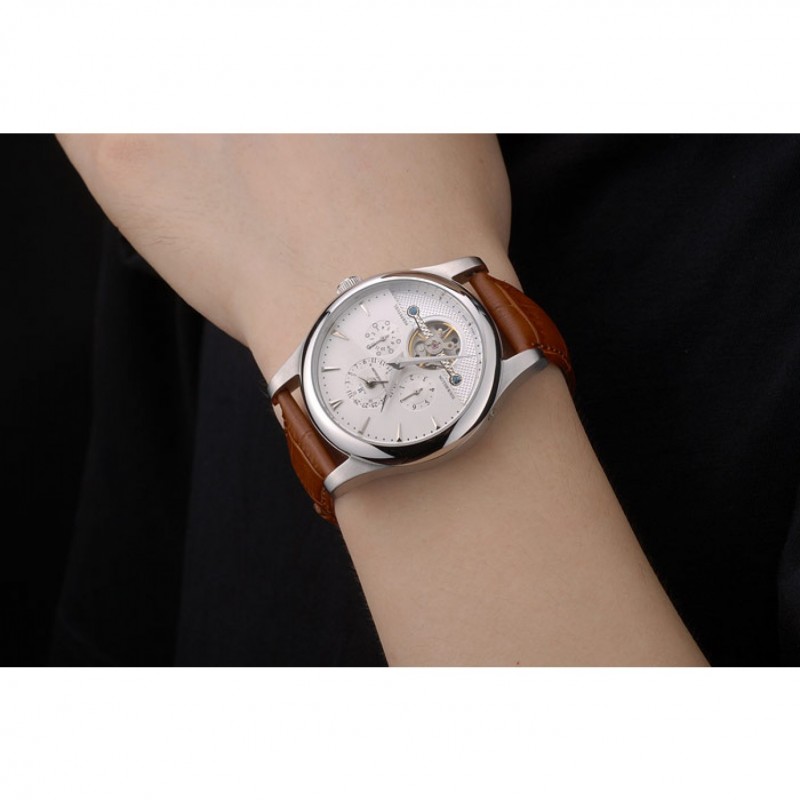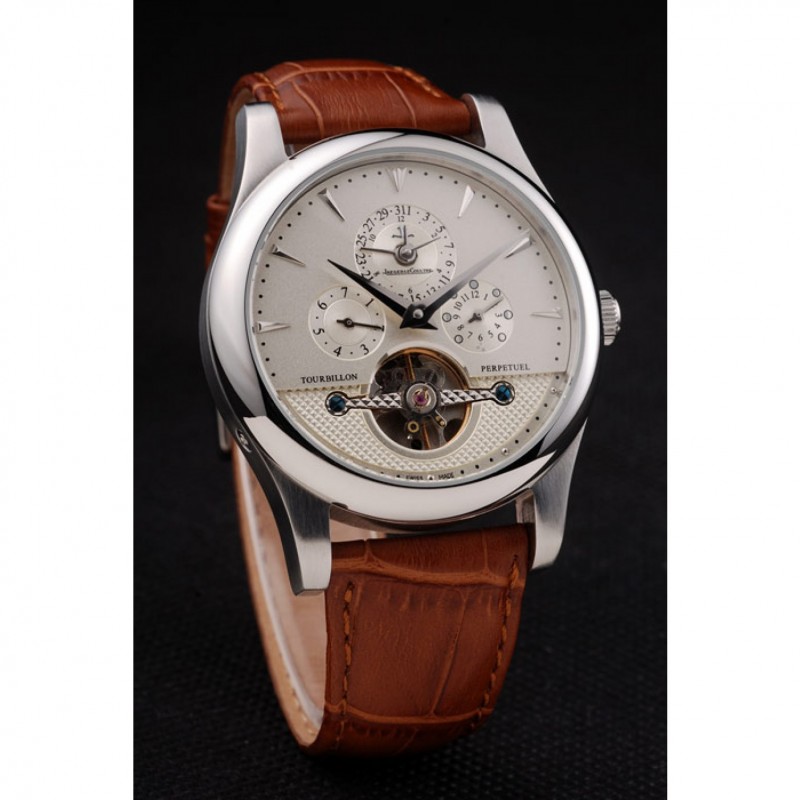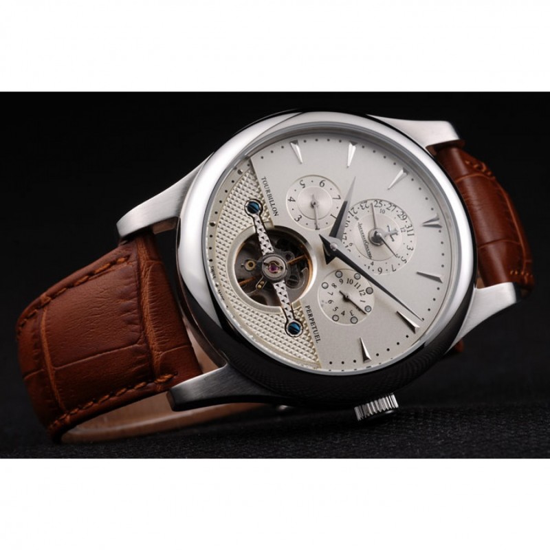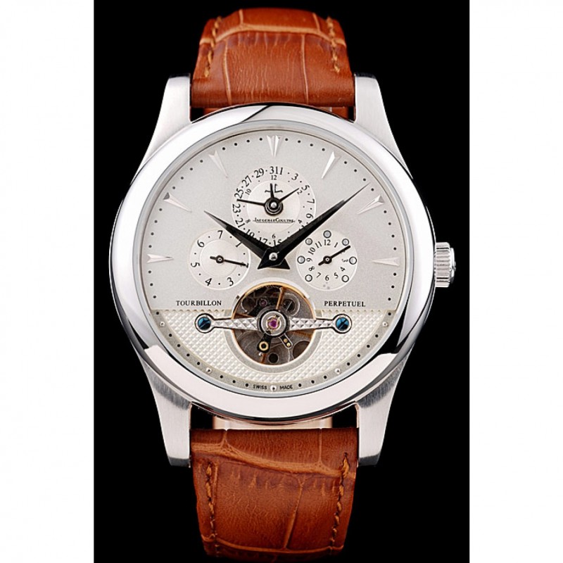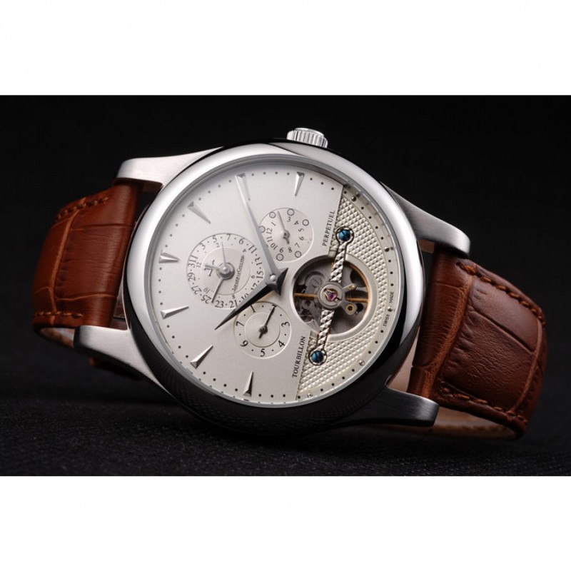 Jaeger Le Coultre Master Control Tourbillon Cadran Blanc bracelet en cuir brun