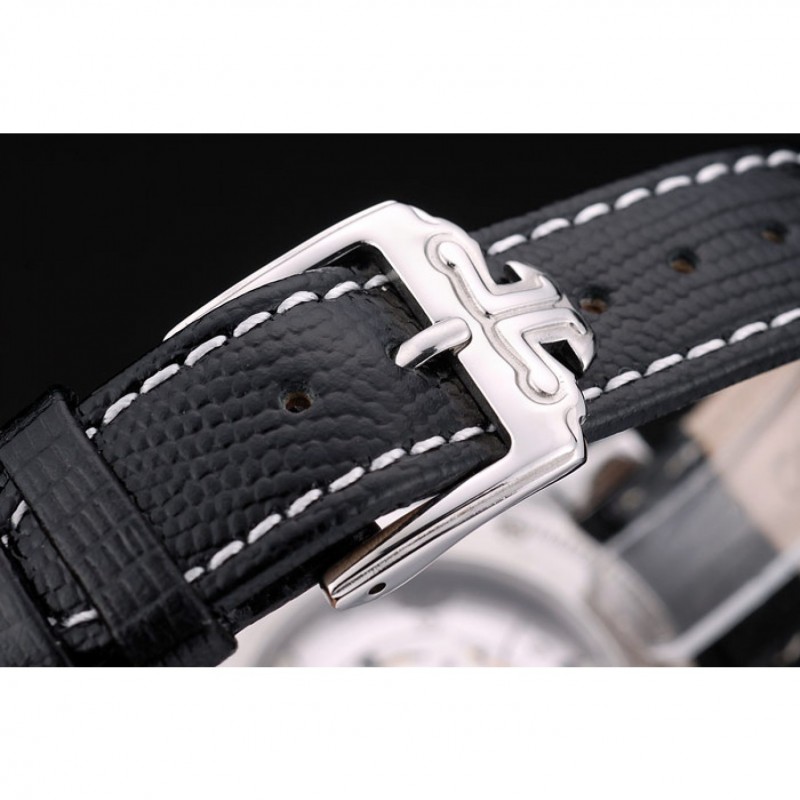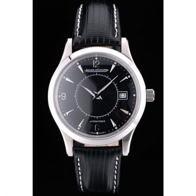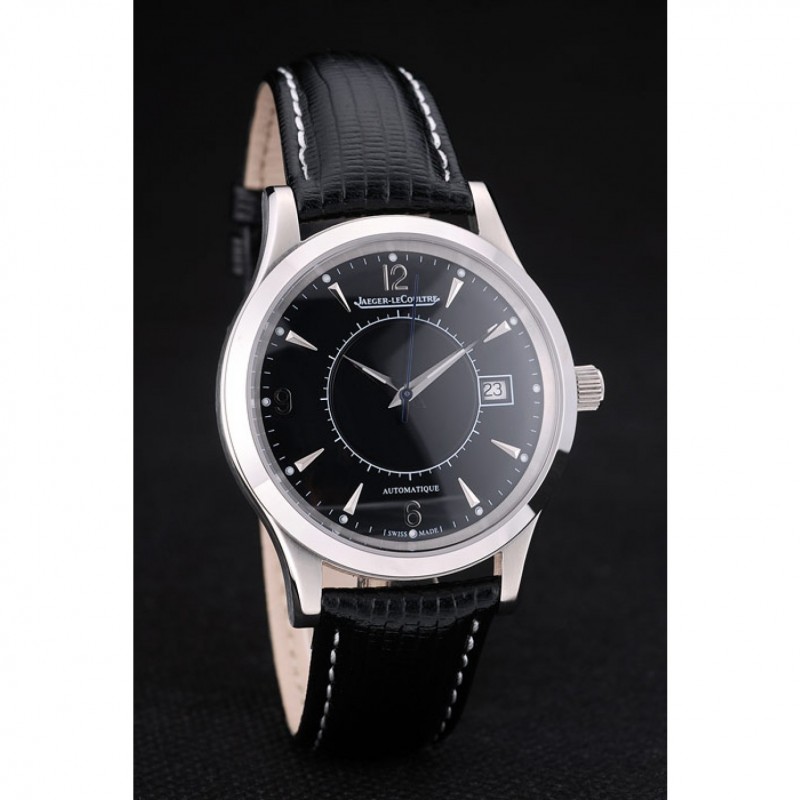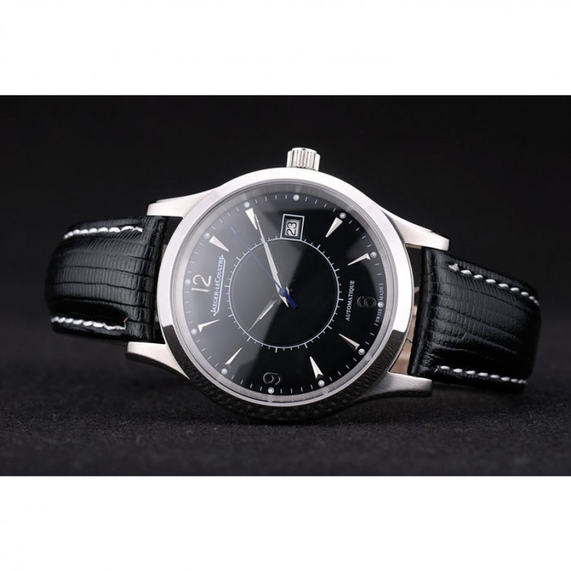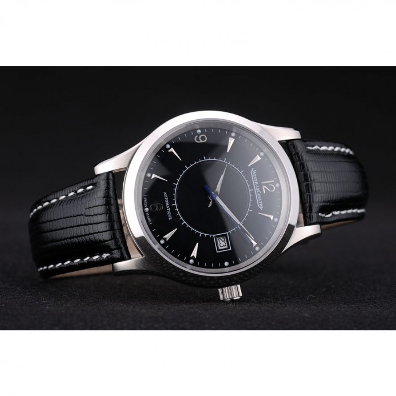 Bracelet:logo et Jaeger-Le Coultre chaleur bracelet en cuir de peau de serpent noir gaufré avec coutures de fil blanc et acier inoxydable poli logo fermoir crochet boucle de coupe