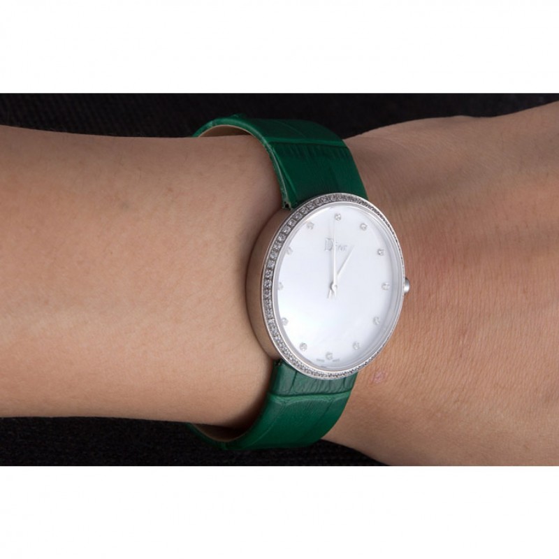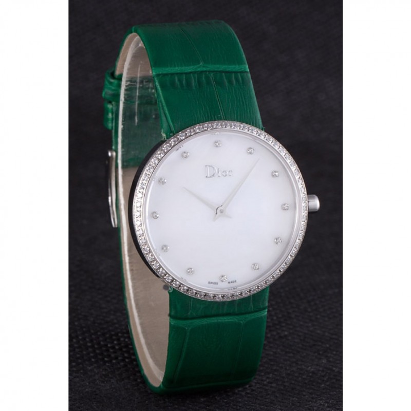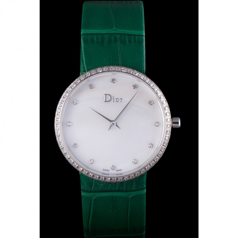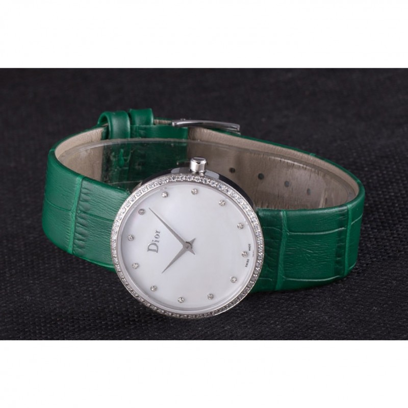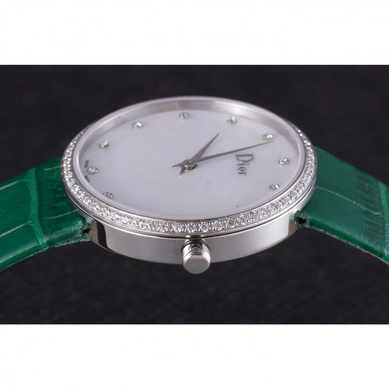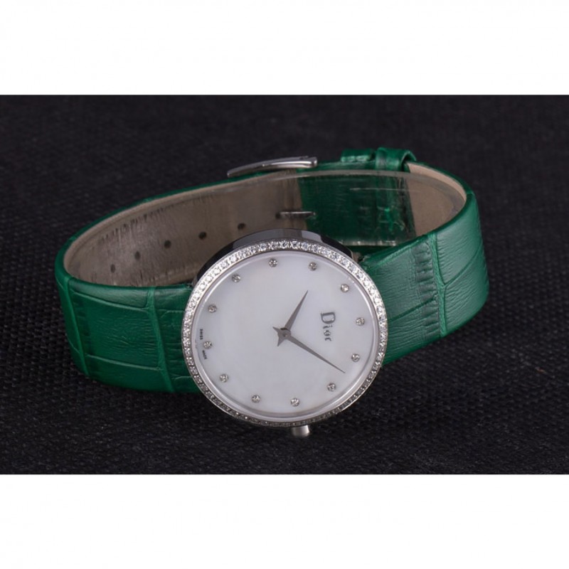 Bracelet:vert bracelet en cuir de crocodile avec Dior gravé fermoir crochet boucle en acier inoxydable poli