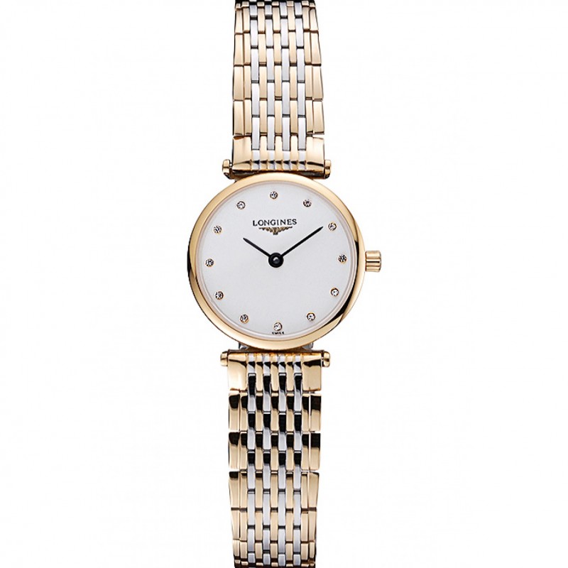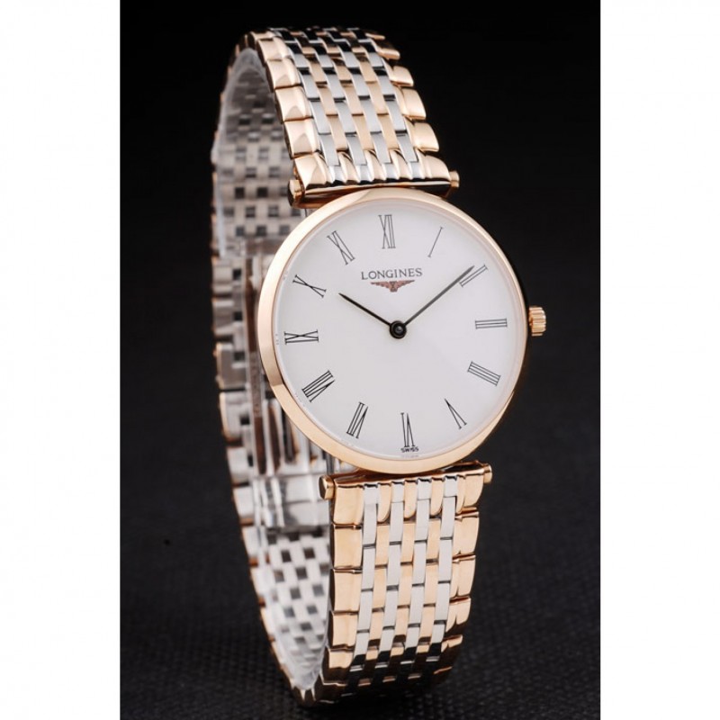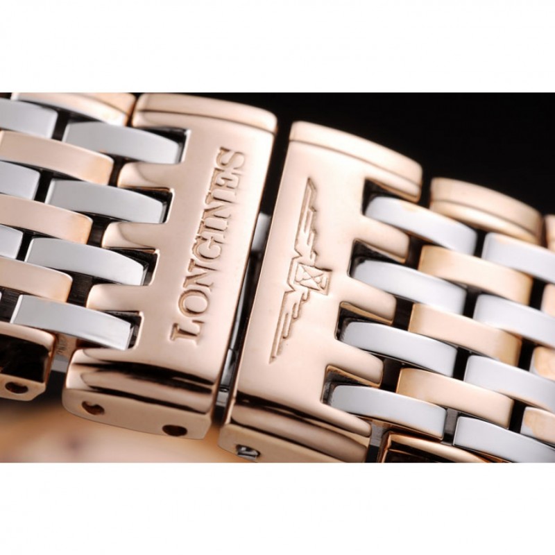 Bracelet:18k Rose- plaqué or et bracelet à maillons en acier inoxydable poli avec Longines et logo gravé fermoir caché