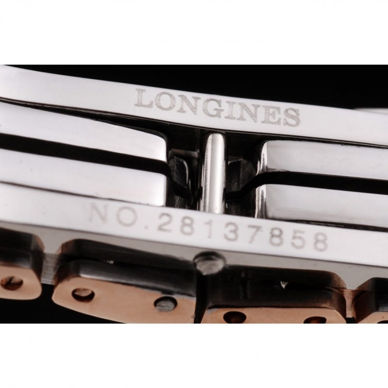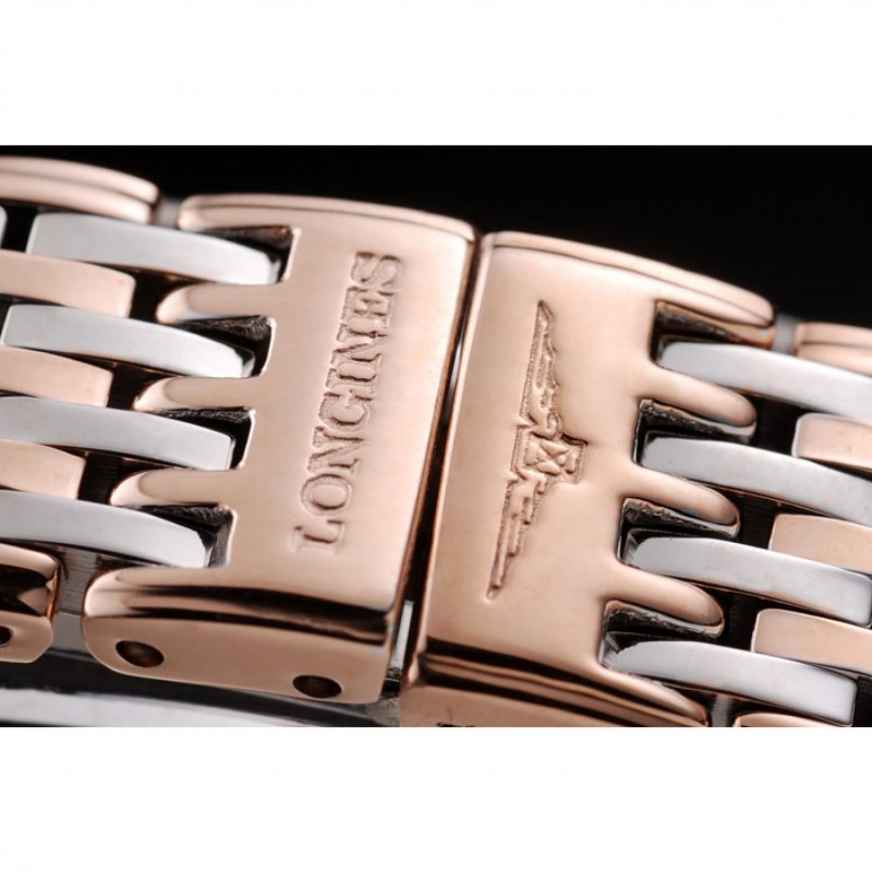 Bracelet:18k Rose- plaqué or et bracelet à maillons en acier inoxydable poli avec Longines et logo gravé fermoir caché