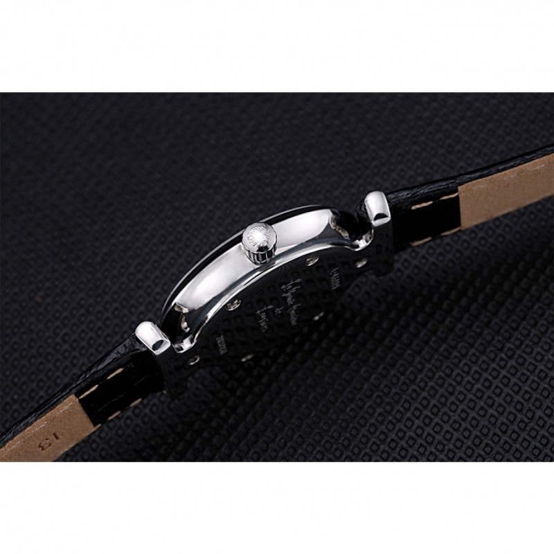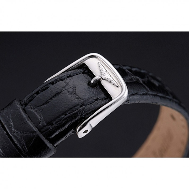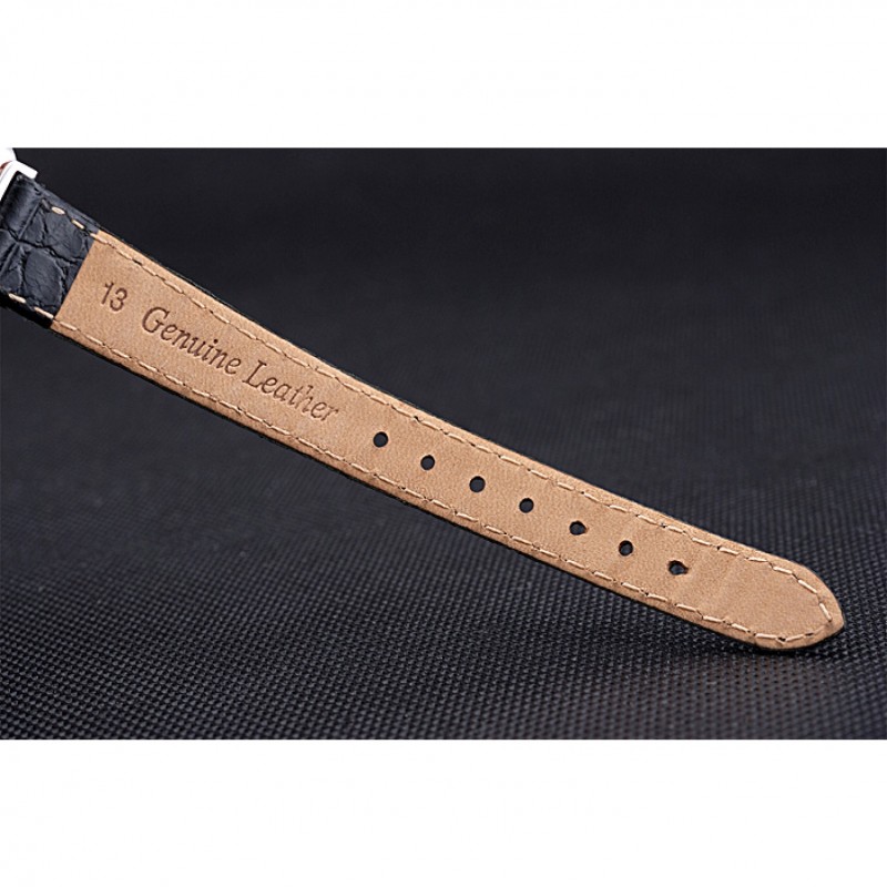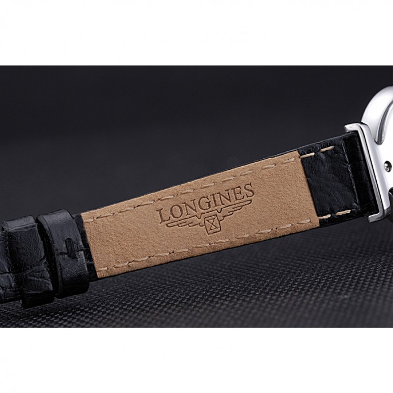 Bracelet:chaleur Longines bracelet en cuir croco noir avec logo gravé fermoir crochet boucle en acier inoxydable poli