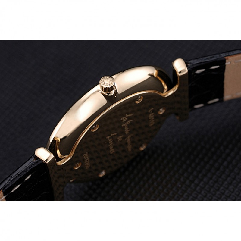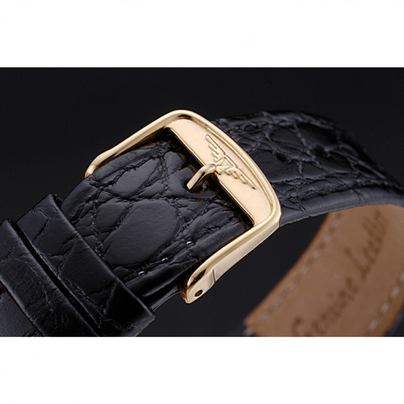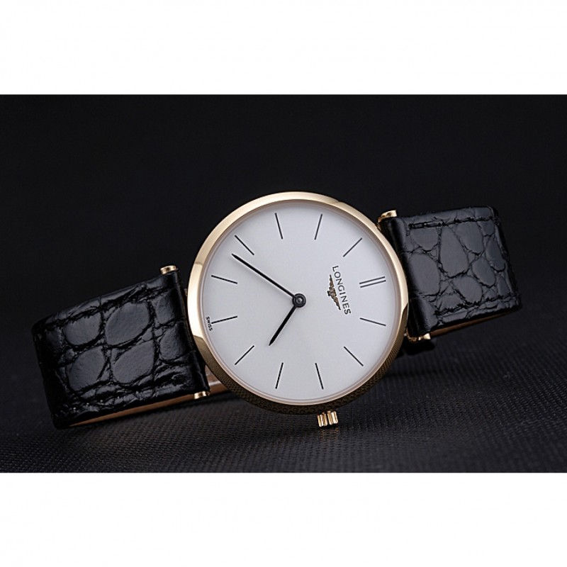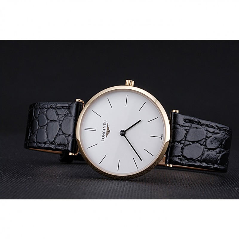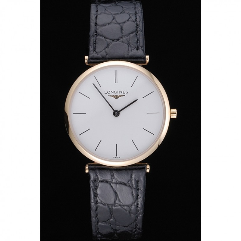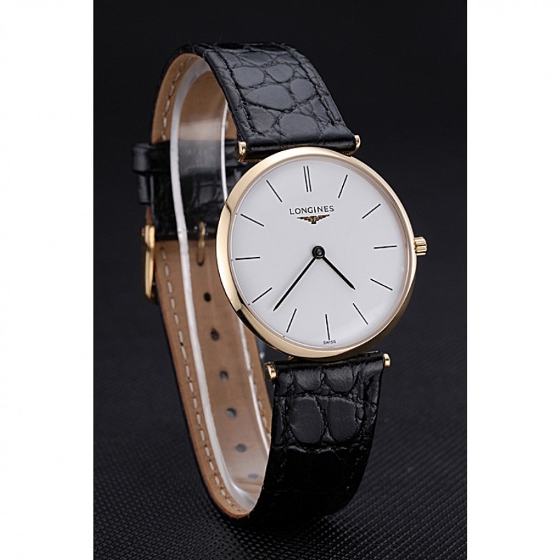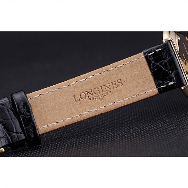 Bracelet:chaleur Longines cuir crocodile noir embossé sangle avec logo gravé or jaune 18 carats plaqué fermoir crochet boucle