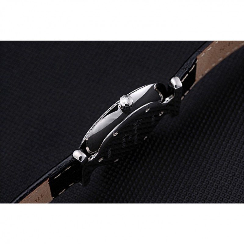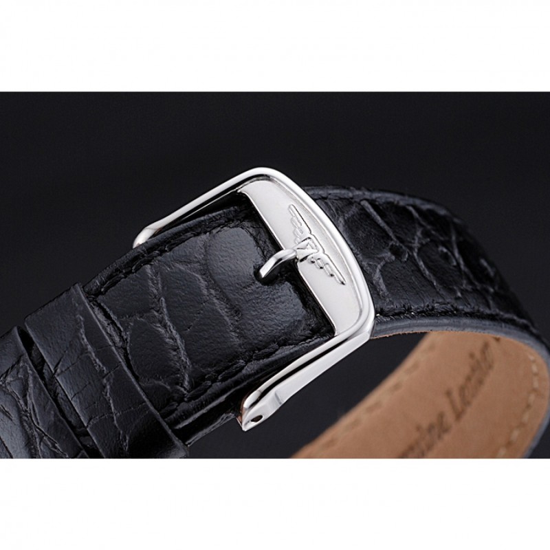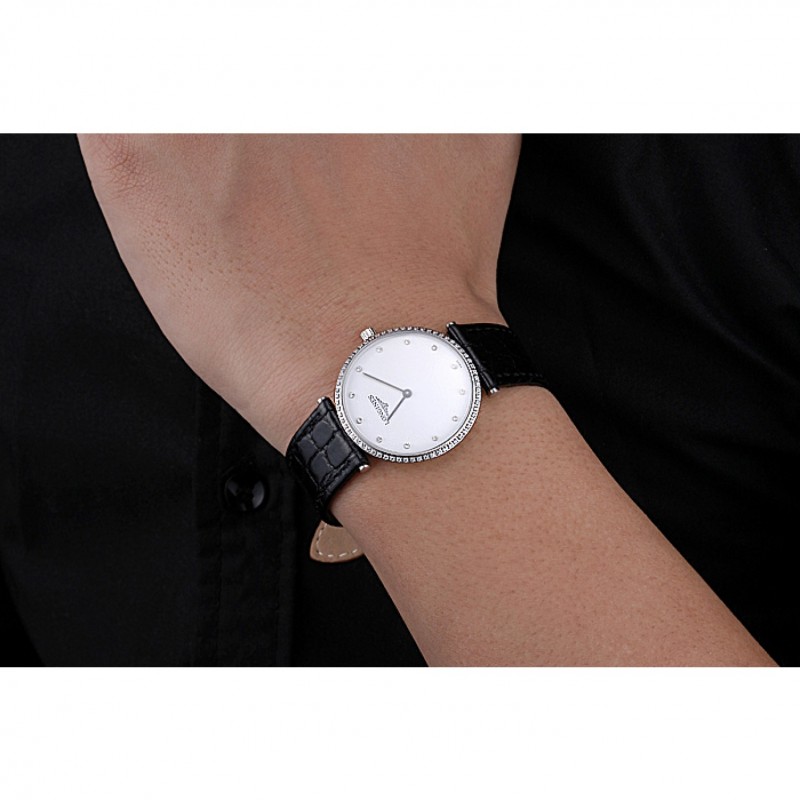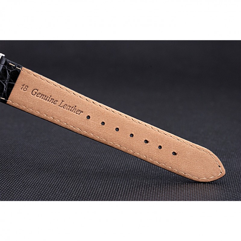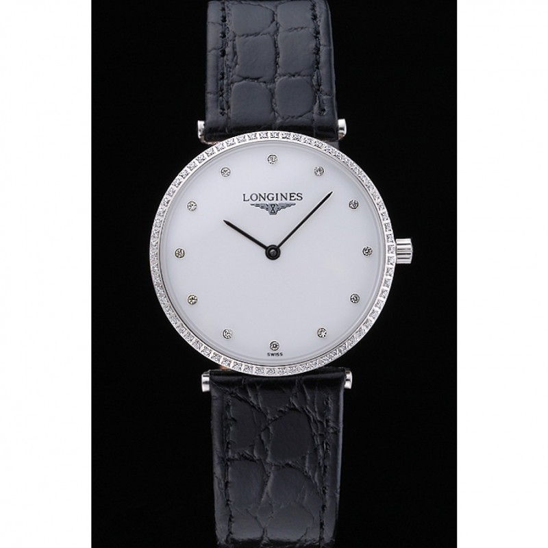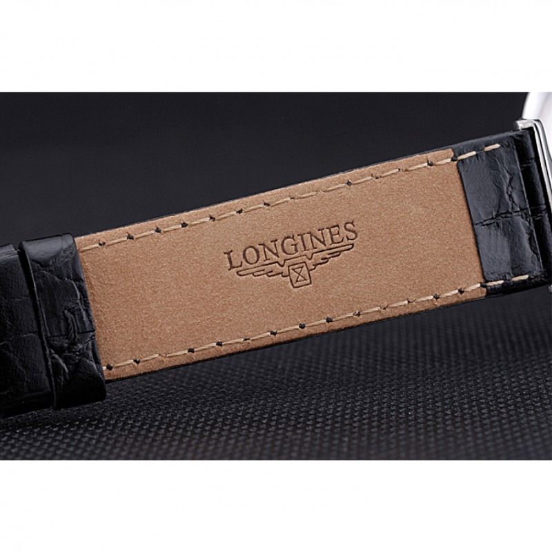 Bracelet:chaleur Longines bracelet en cuir estampé crocodile noir avec logo gravé fermoir en acier inoxydable poli crochet boucle