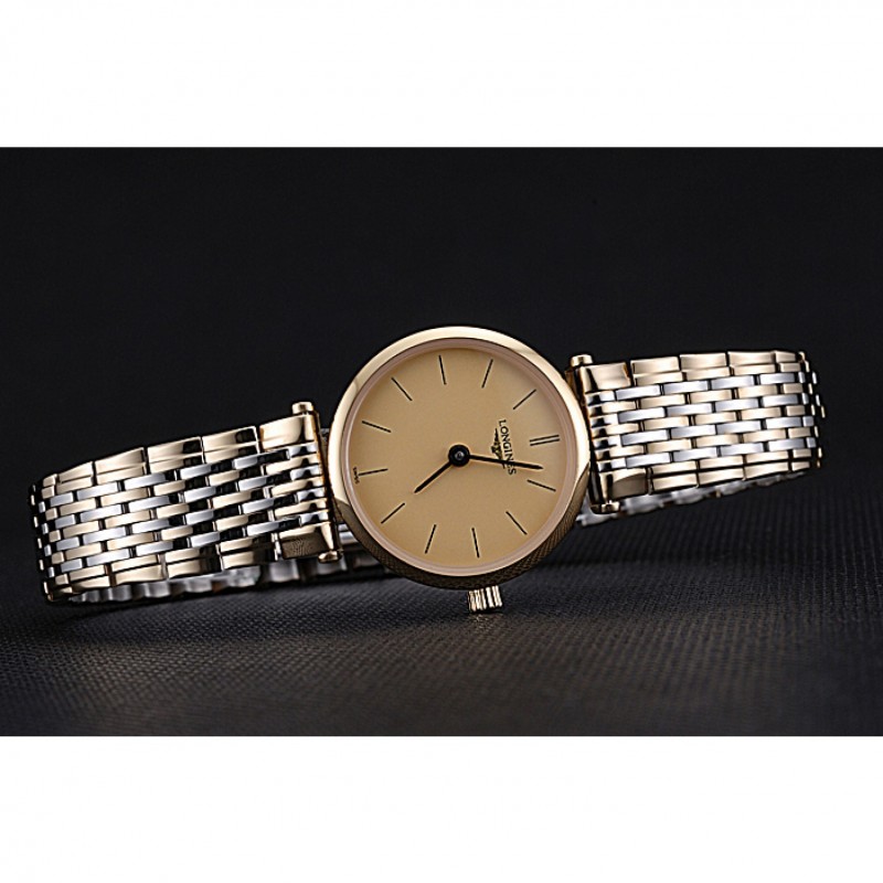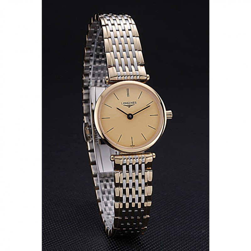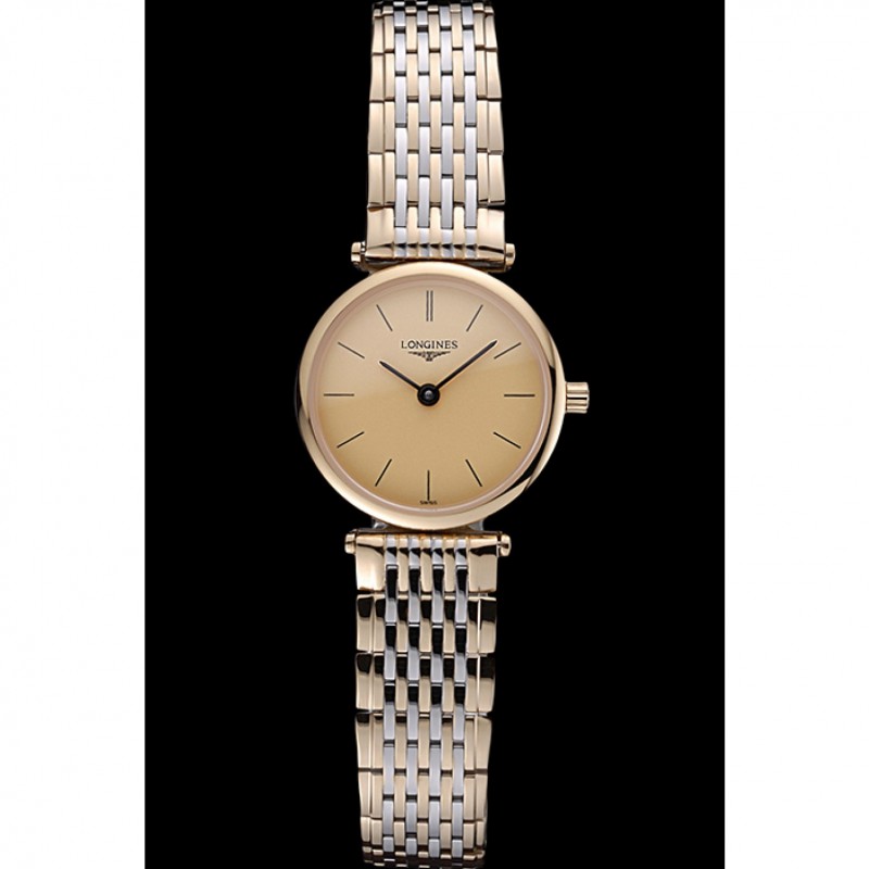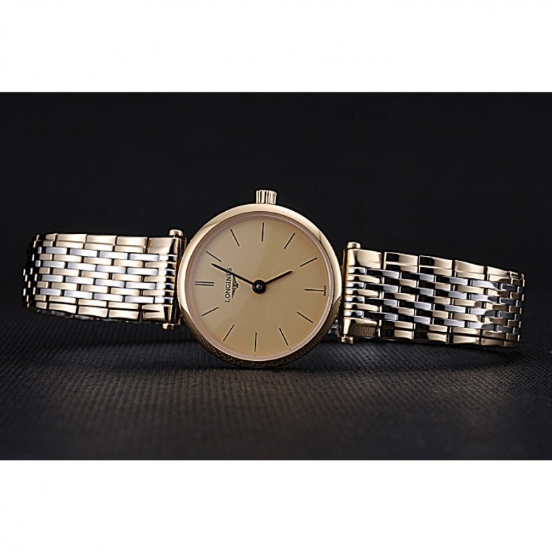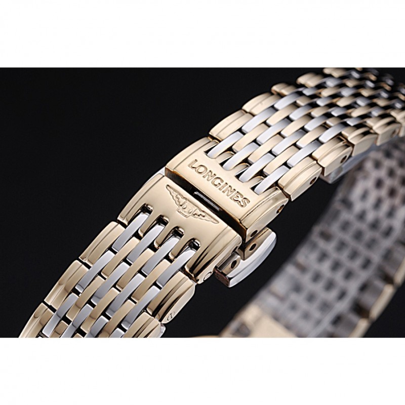 bracelet:18k plaqué or et bracelet à maillons en acier inoxydable poli avec Longines et logo gravé push-presse fermoir caché