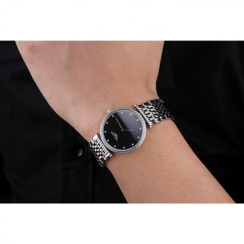 Retour:acier inoxydable poli vissé arrière avec la Grande Classique de gravures Longines