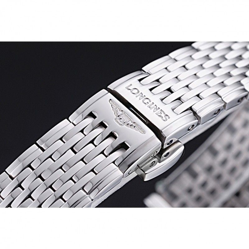 bracelet:poli bracelet à maillons en acier inoxydable avec Longines et logo gravé push-presse fermoir caché