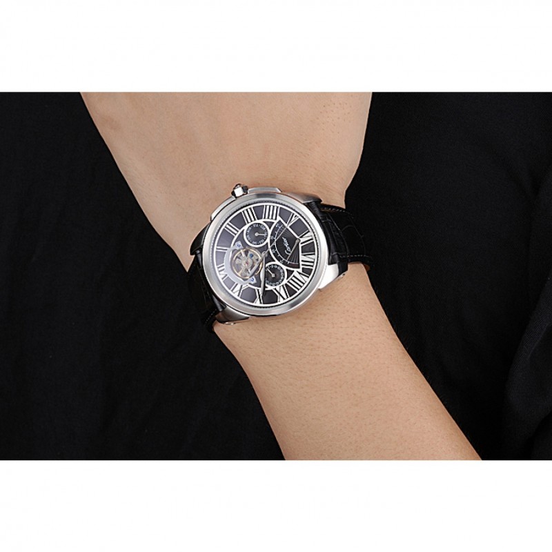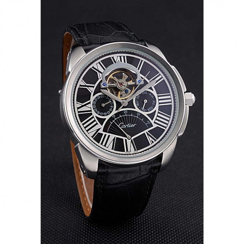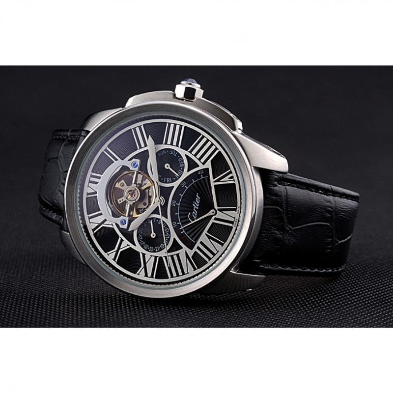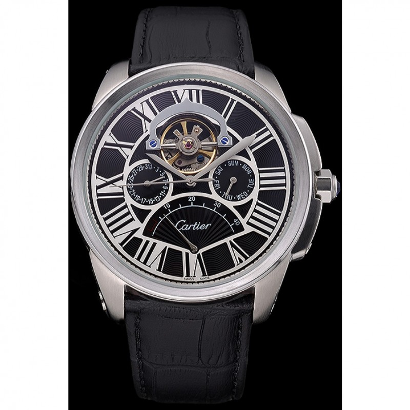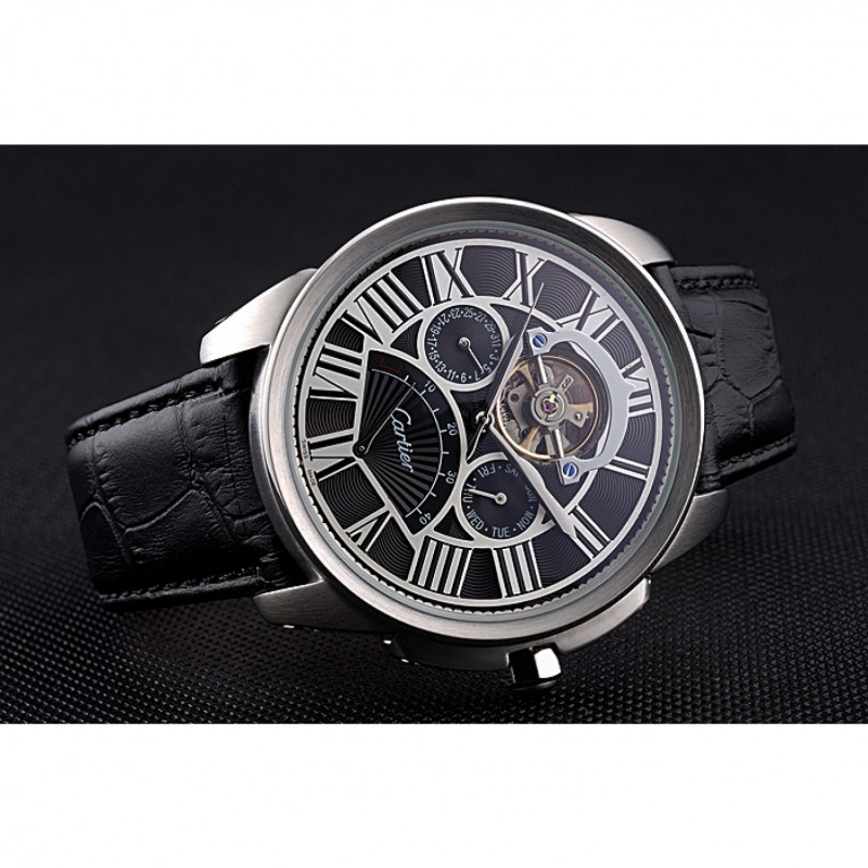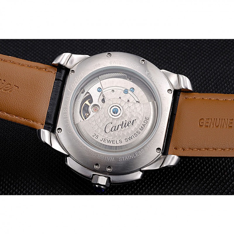 Retourbrossé en acier inoxydable vissé en arrière avec la mécanique transparents centre révélateur et inscription Cartier