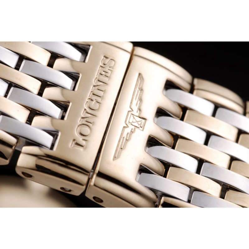 bracelet:18k plaqué or et bracelet à maillons en acier inoxydable poli avec Longines et le logo fermoir caché gravé