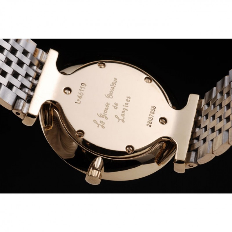 Retour:plaqué or 18k vissé vers le bas en arrière avec des inscriptions Longines