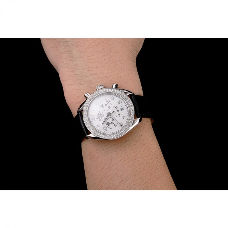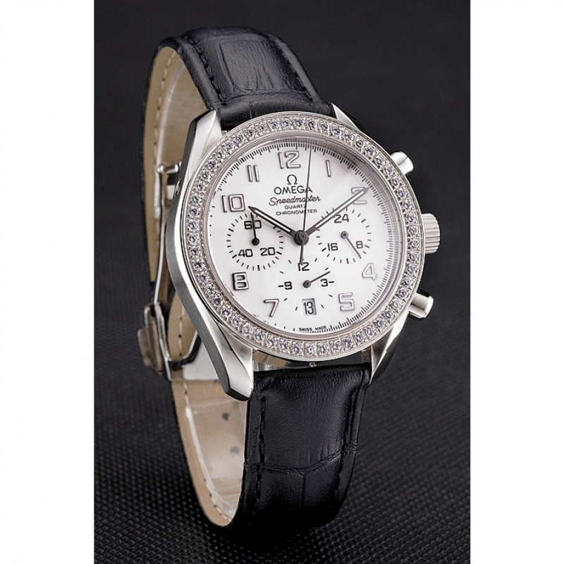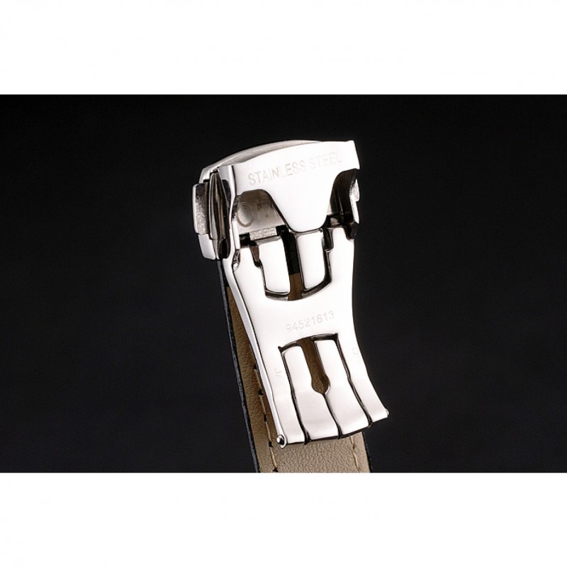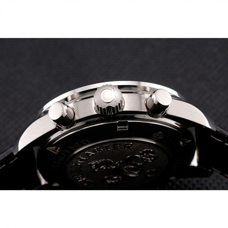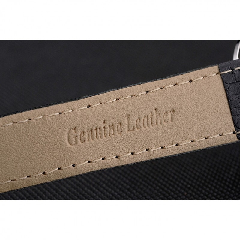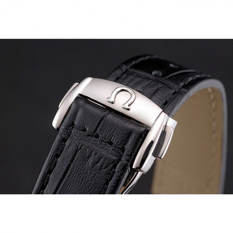Bracelet:bracelet en cuir de crocodile noir avec Omega logo gravé en acier inoxydable poli fermoir crochet push-presse
