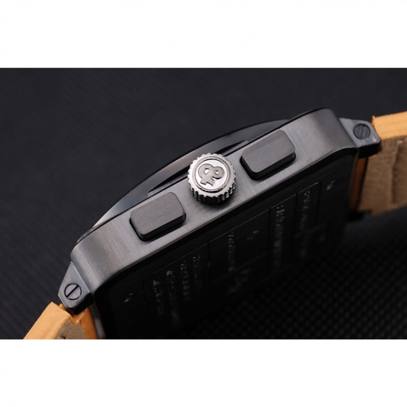 Couronne:Bell et Ross logo gravé couronne cutwork placage ionique avec une couronne bouton-poussoir rectangulaire de chaque côté de celui-ci